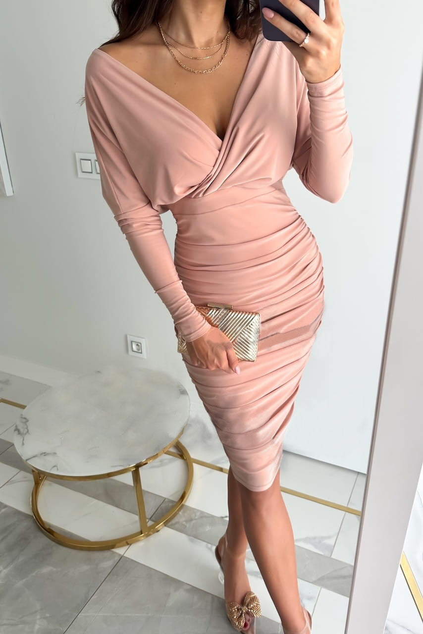 🌶️💃✨ Seksowna sukienka z długimi rękawami i dekoltem w kształcie litery V, opinająca talię