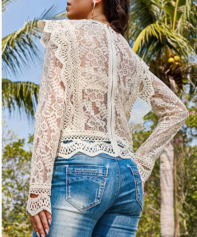 🍀Wydrążony, koronkowy top odsłaniający brzuch dla kobiet