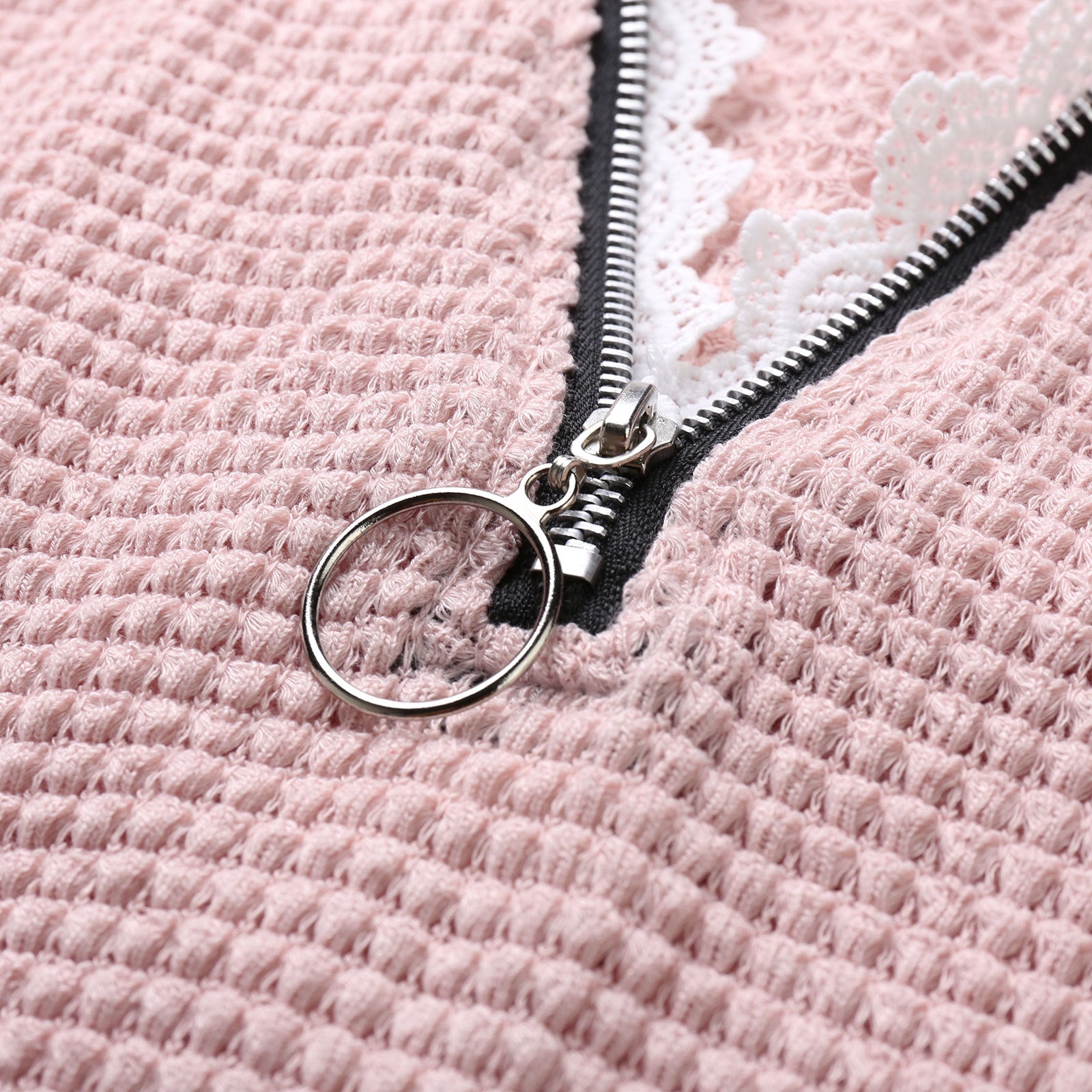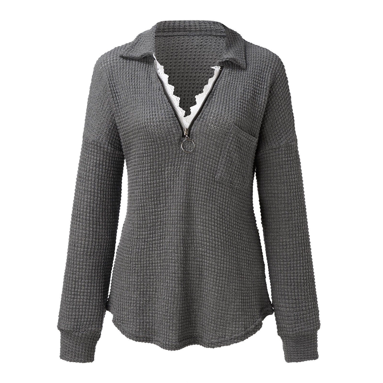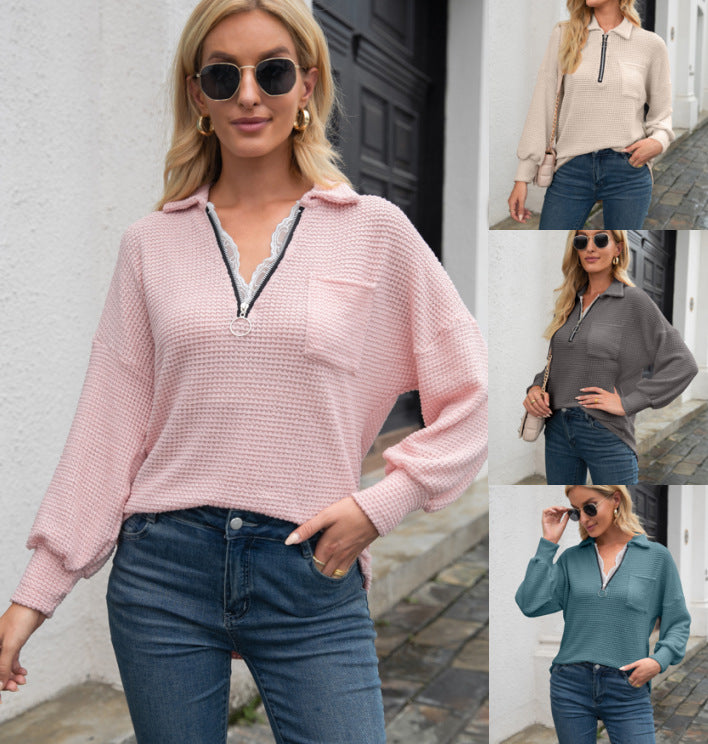 🍁Sweter T-shirt z klapami na zamek i koronką