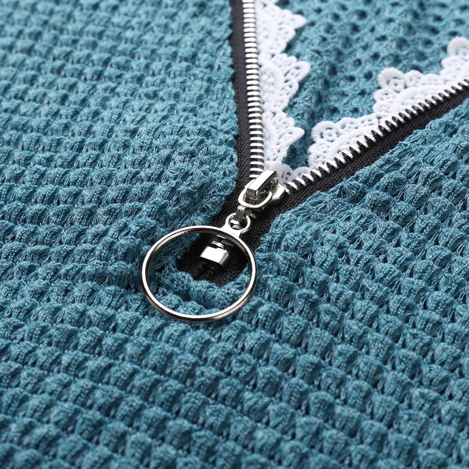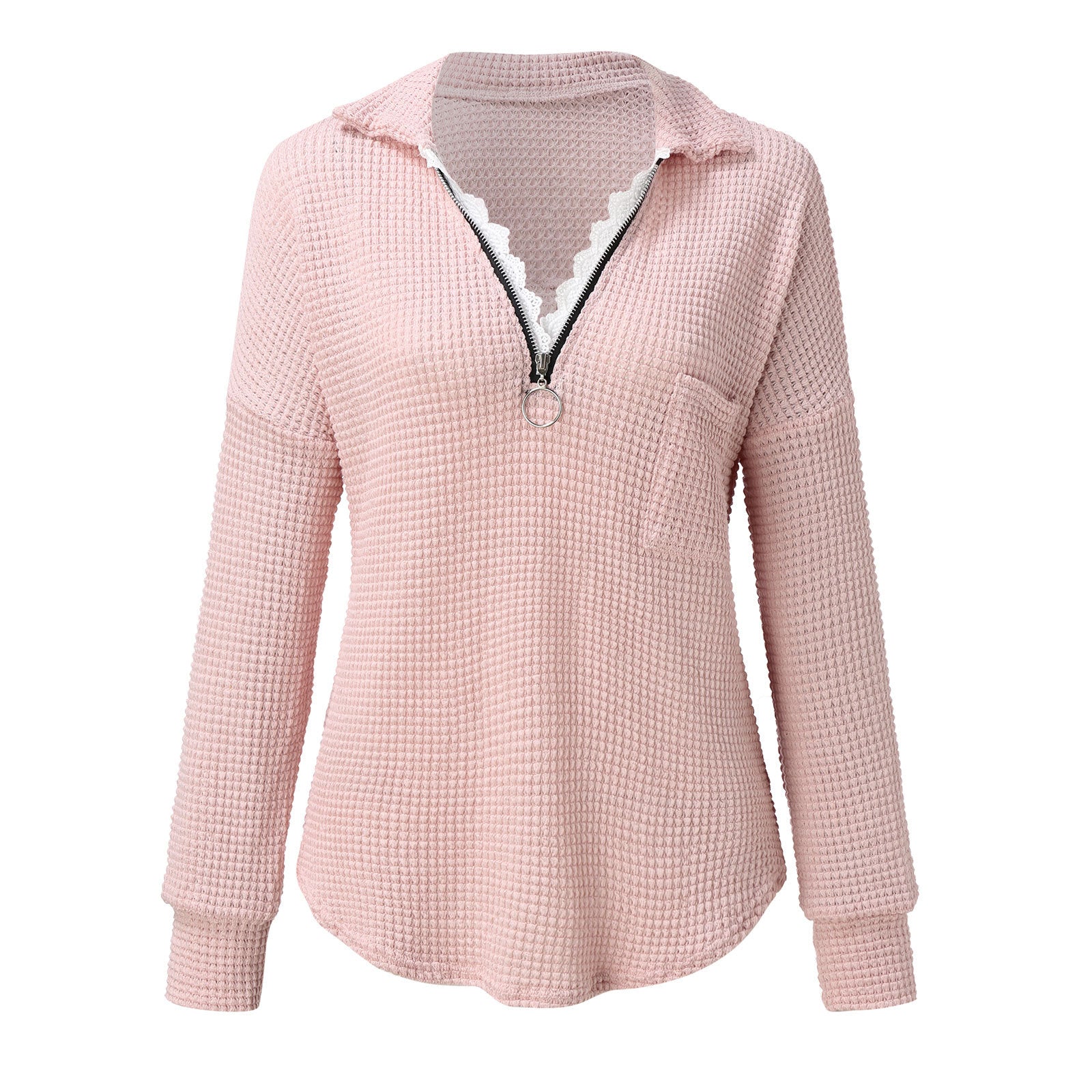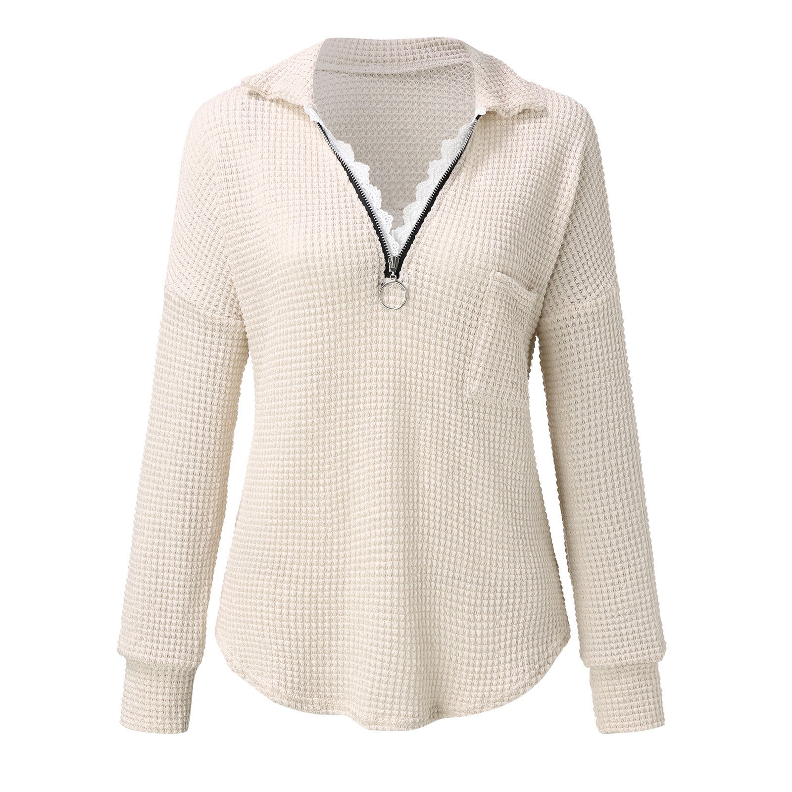 🍁Sweter T-shirt z klapami na zamek i koronką