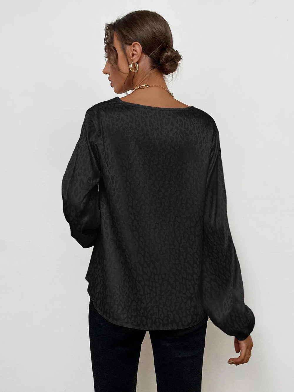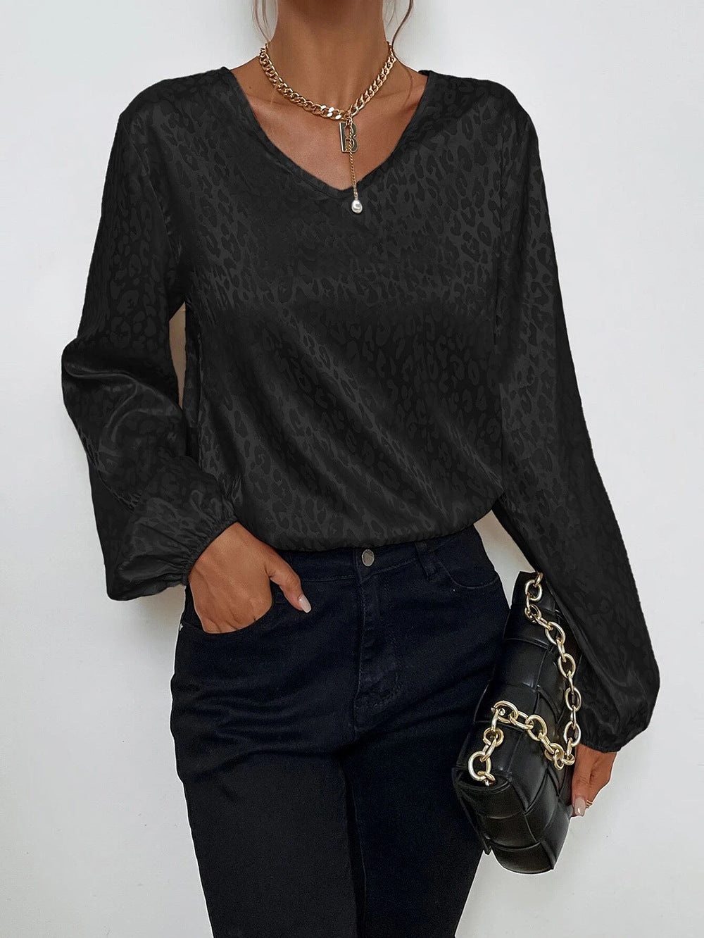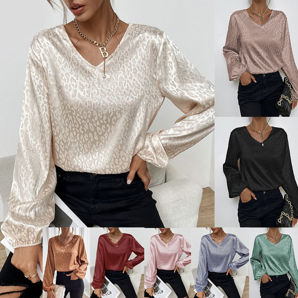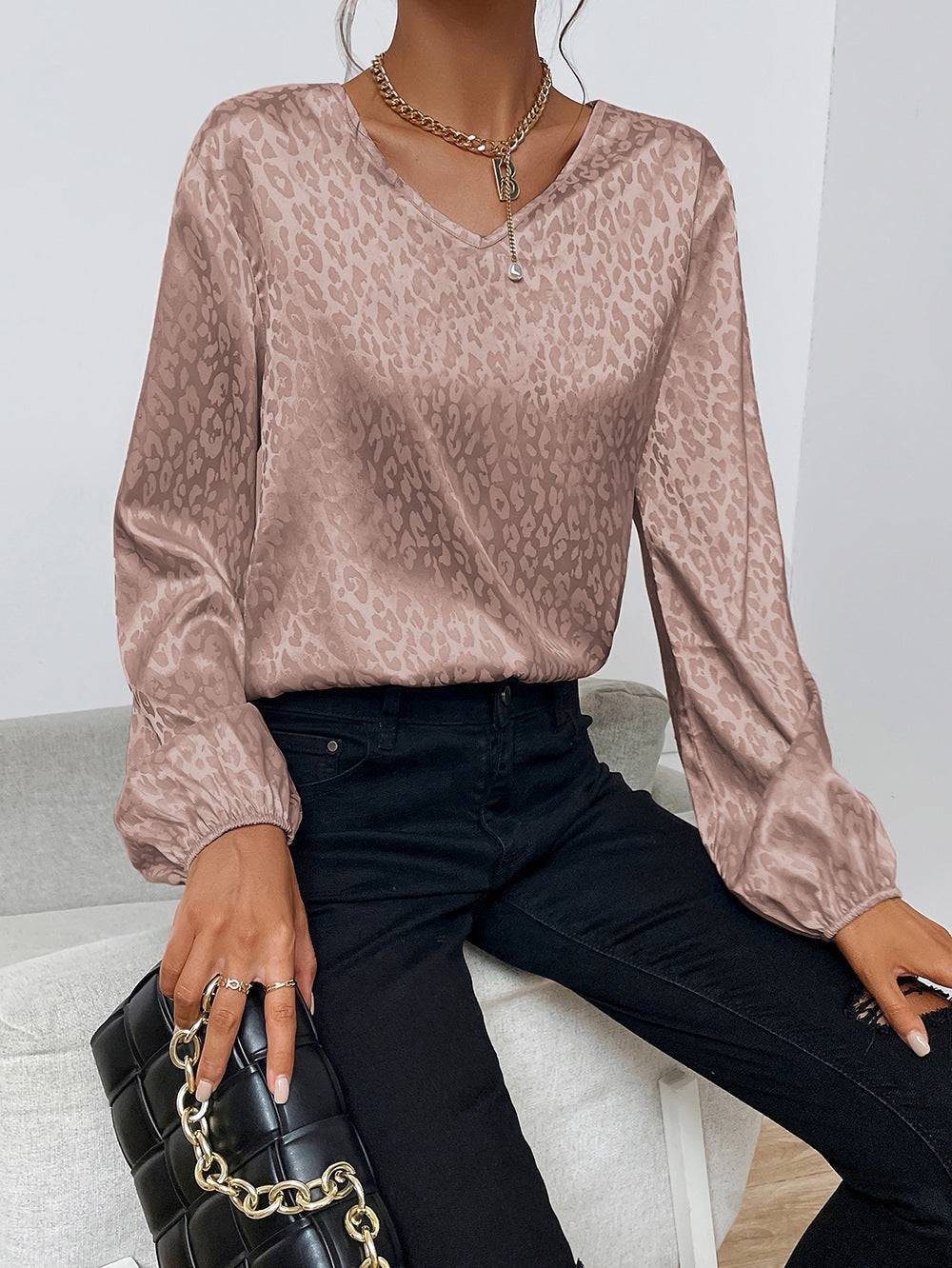 Ta koszula w panterkę z dekoltem w kształcie litery V emanuje uroczym, dzikim urokiem i jest pełna mody, co czyni ją niezbędnym elementem dla królowych mody! 🌟 #Moda w panterkę # #Żakardowy długi rękaw # 🐆