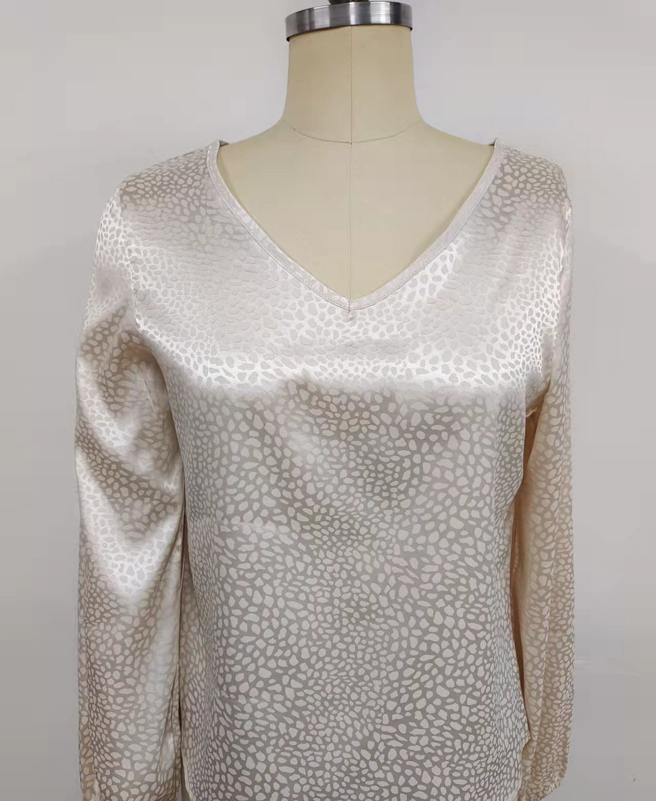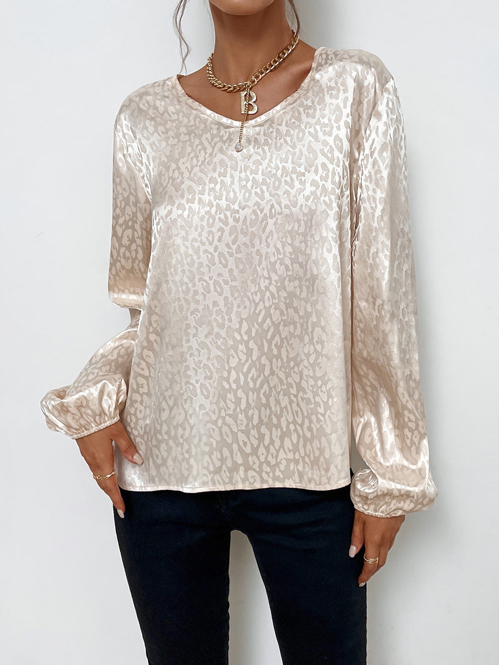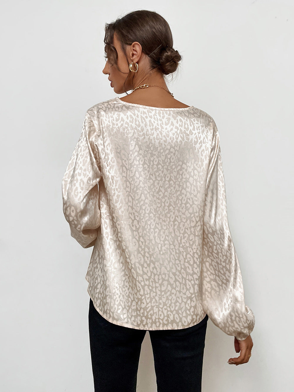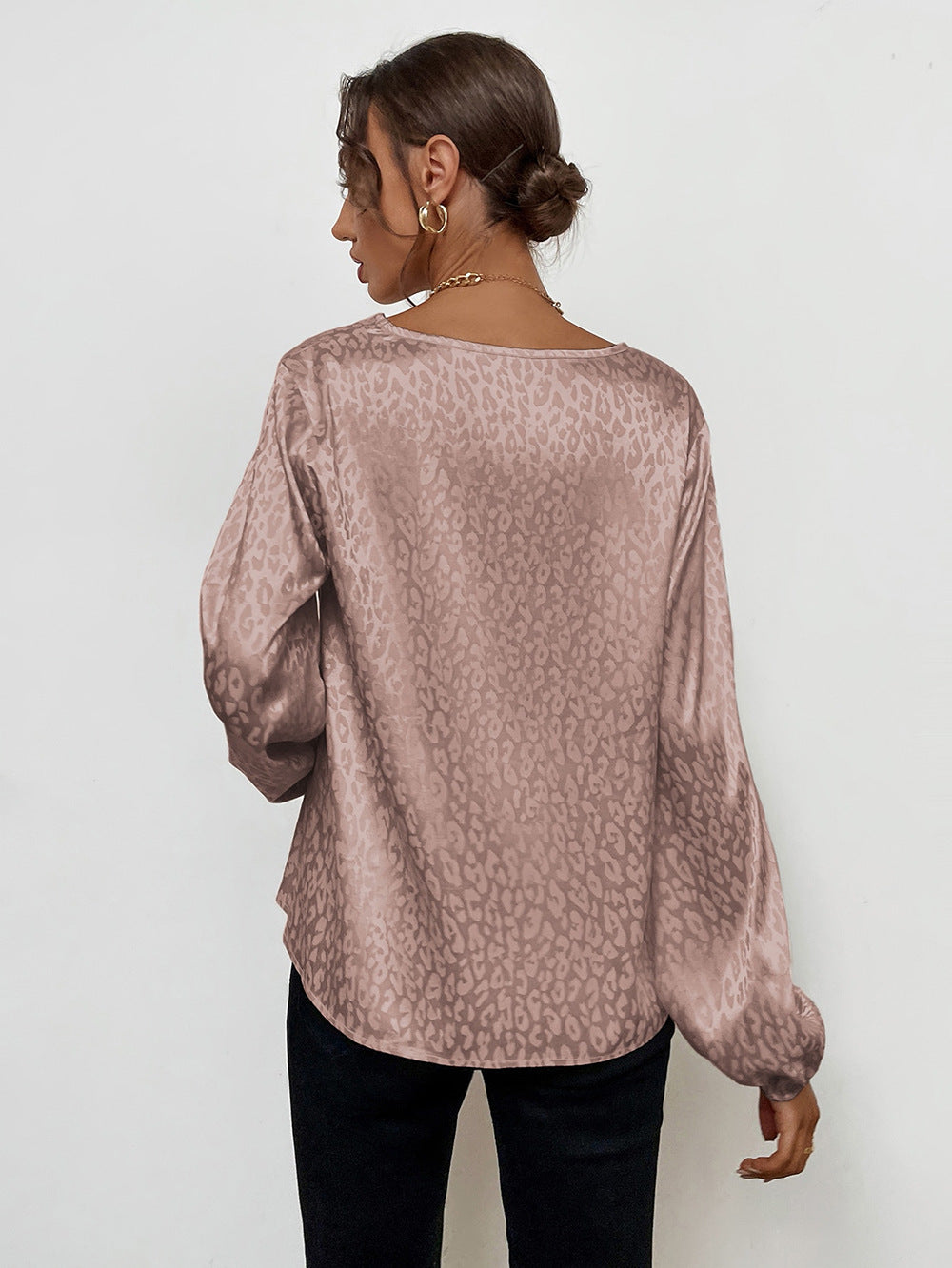 Ta koszula w panterkę z dekoltem w kształcie litery V emanuje uroczym, dzikim urokiem i jest pełna mody, co czyni ją niezbędnym elementem dla królowych mody! 🌟 #Moda w panterkę # #Żakardowy długi rękaw # 🐆