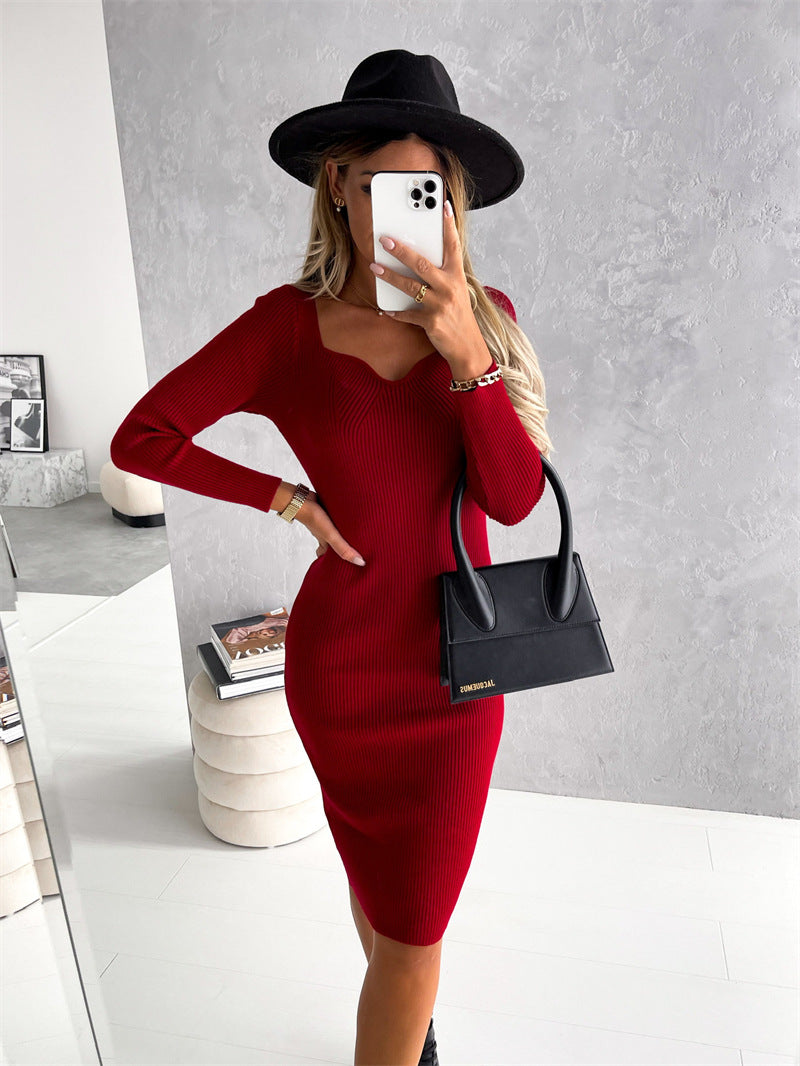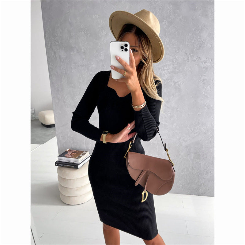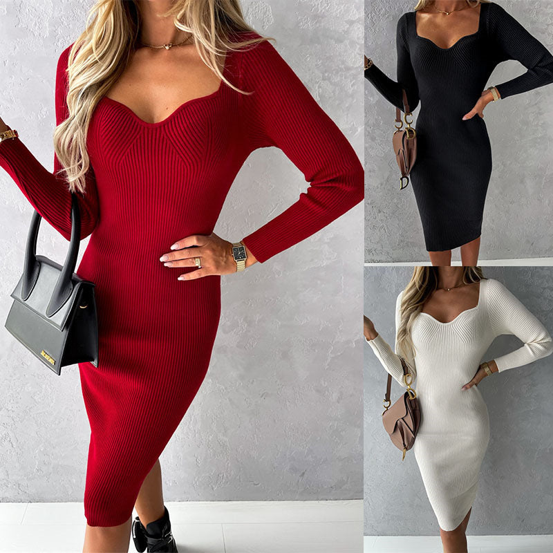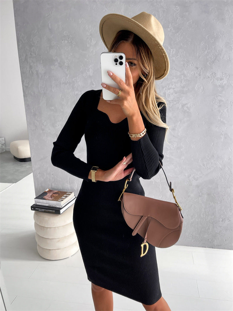 👄💃Seksowna sukienka z długim rękawem i kwadratowym dekoltem