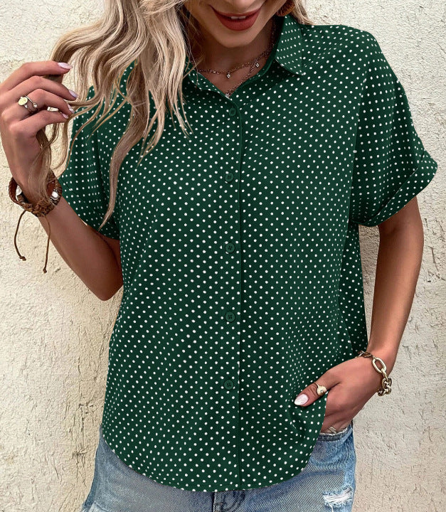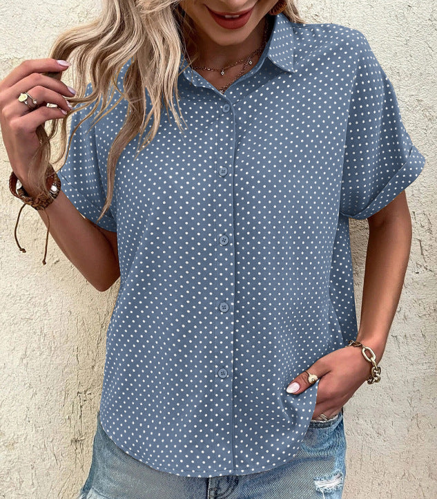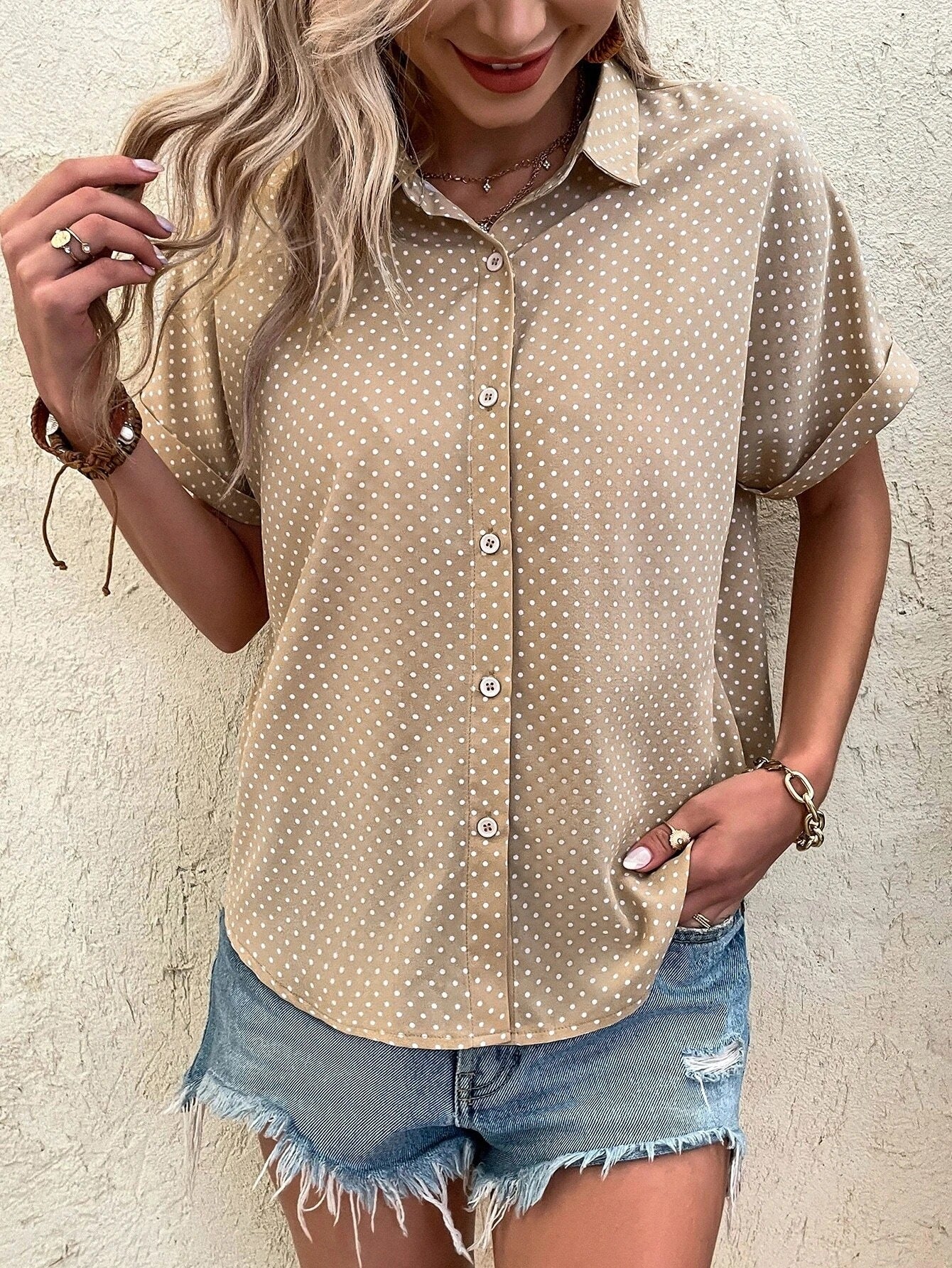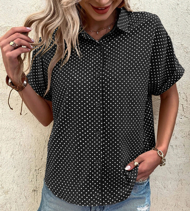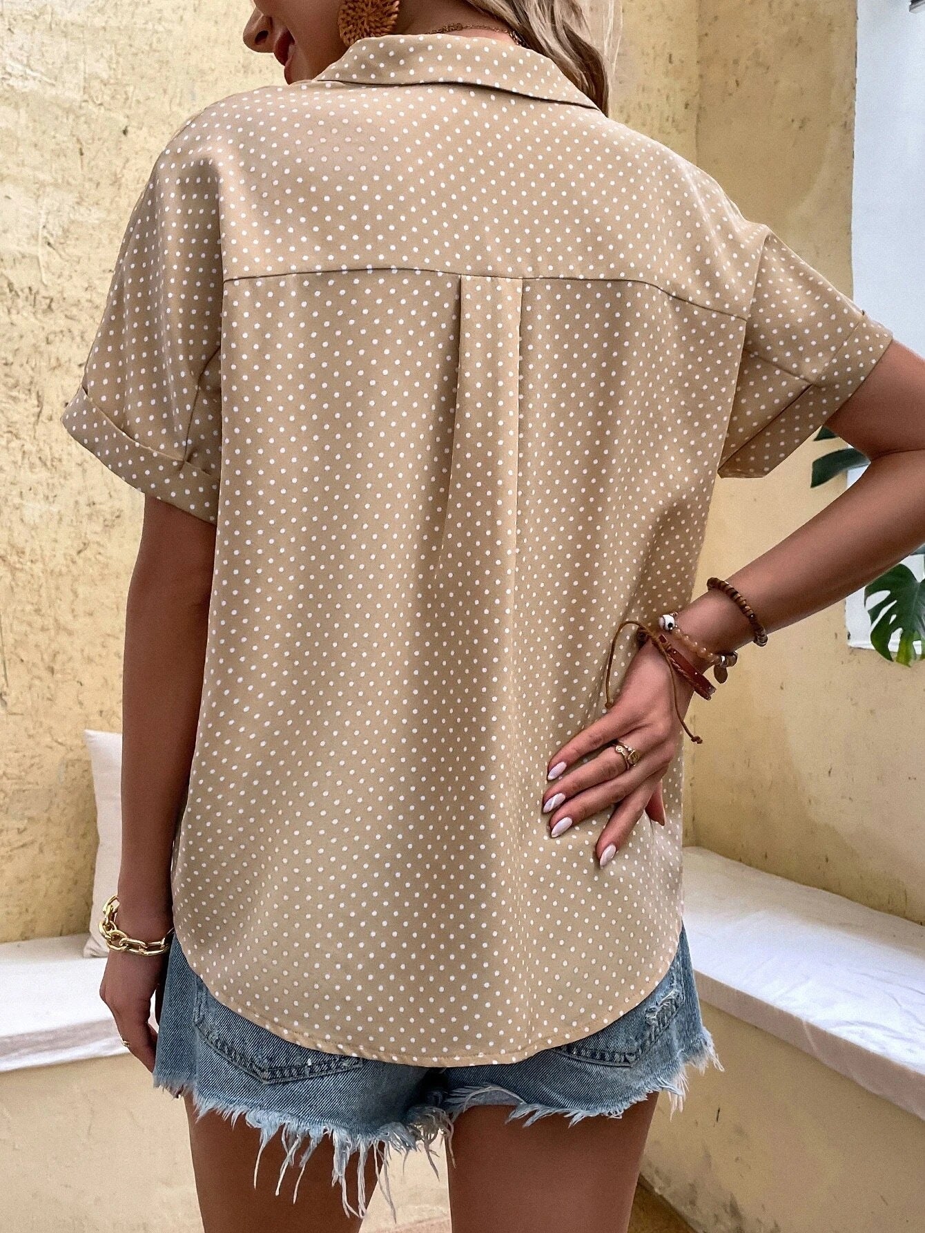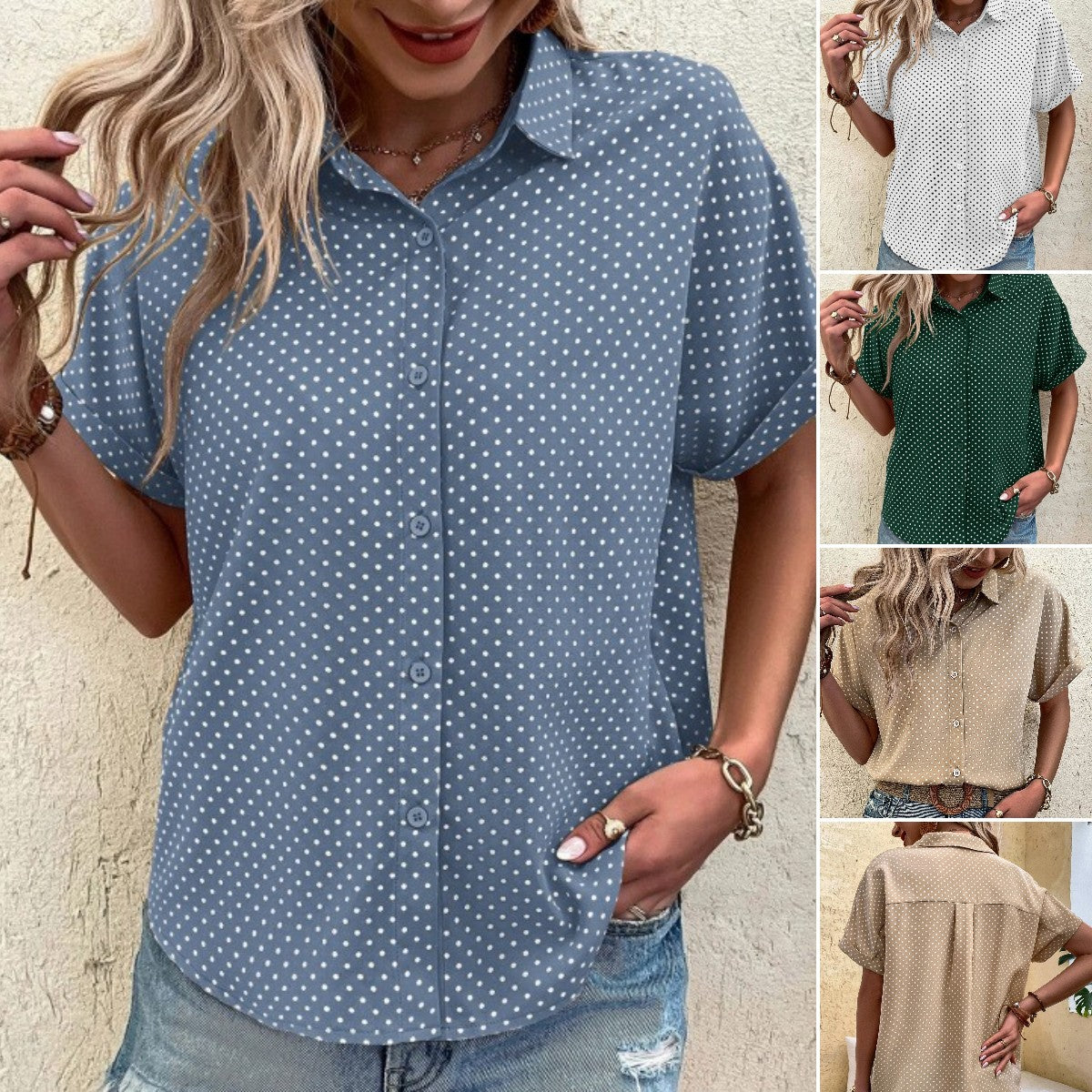 👔👚 Koszule damskie Koszule z krótkim rękawem i klapami w kropki
