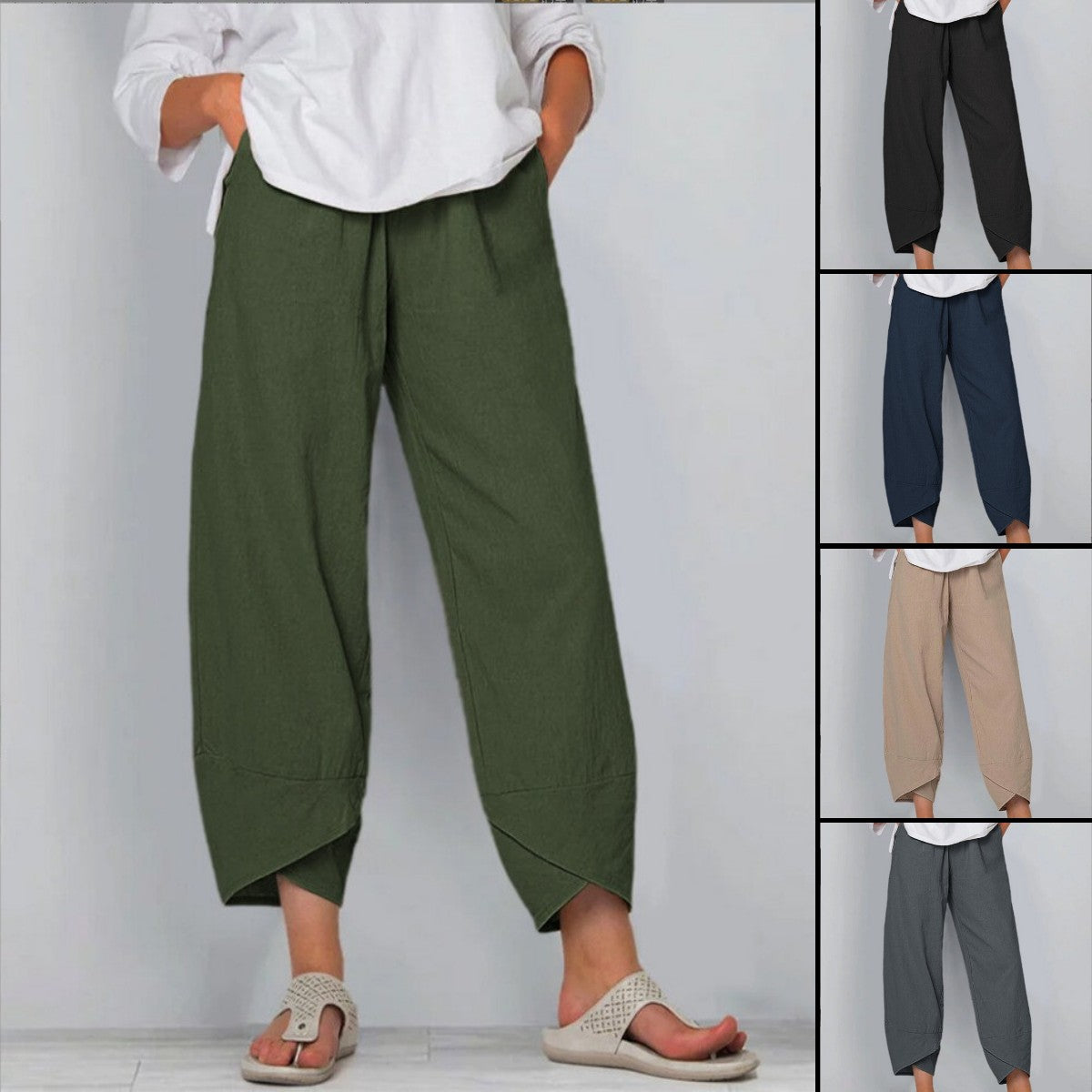 👖 Modne, przycięte spodnie damskie w dużych rozmiarach, w jednolitym kolorze, zapewniające odświeżający, letni wygląd! Wygodna i luźna konstrukcja pozwala cieszyć się zrelaksowanym i wygodnym noszeniem.