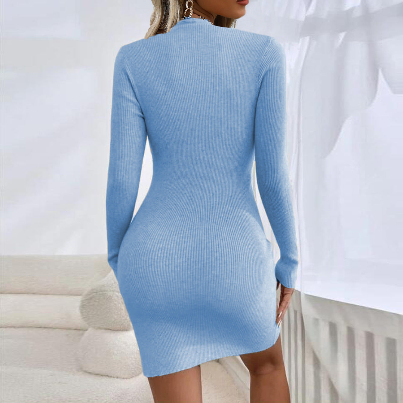 🤩💃 Sweterowa sukienka z kwadratowym dekoltem, zapinana na guziki i przylegająca do bioder 🌟
