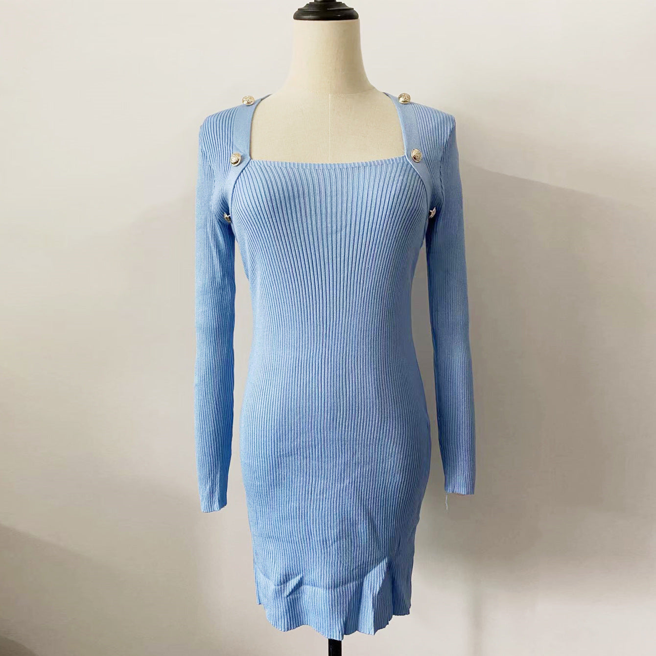 Noś tę dzianinową sukienkę zapinaną na guziki z kwadratowym dekoltem, aby emanować uroczą kobiecością i pochwalić się pewnym siebie i eleganckim stylem! ✨👗