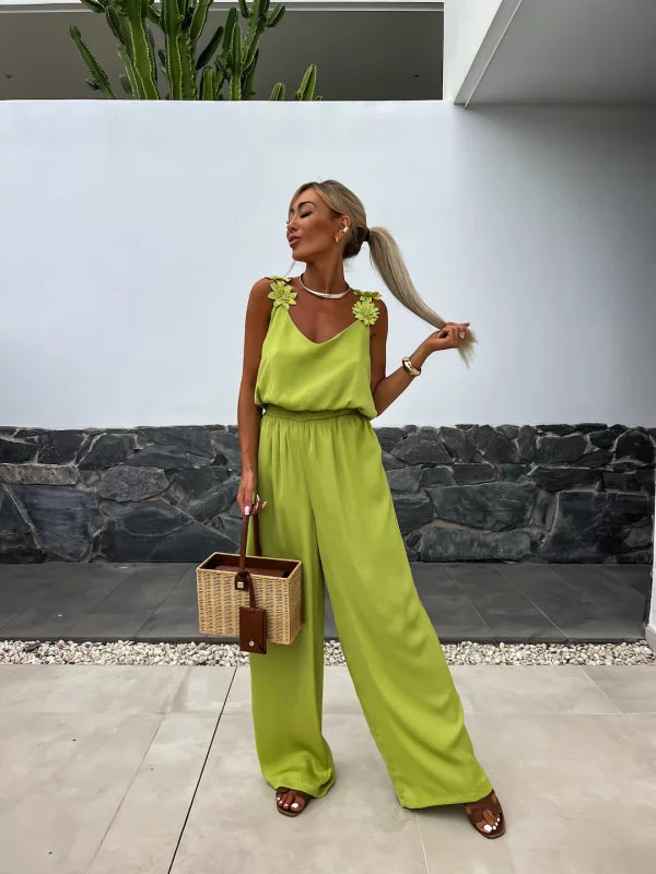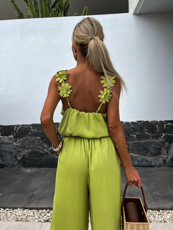 Ten wyjątkowy strój łączy w sobie najnowsze trendy mody. Będzie idealny na każdą okazję i jest przy tym łatwy w stylizacji – wystarczy, że dobierzesz do niego ulubione dodatki, a otrzymasz efektowną stylizację.Łączy on w sobie elegancję z wygodą, dzięki czemu możesz czuć się komfortowo i wyglądać zjawiskowo przez cały dzień. Model posiada regulowane ramiączka zdobione doszytymi, zmysłowymi kwiatami, które podsycą urodę biustu oraz pleców. Szersza gumka w pasie pięknie odcina części kombinezonu i fantastycznie podkreśla talię. Co więcej, kombinezon posiada podszewkę, która zapewni Ci dyskrecję.