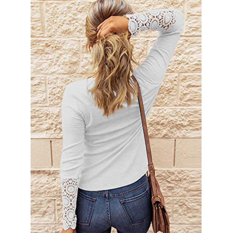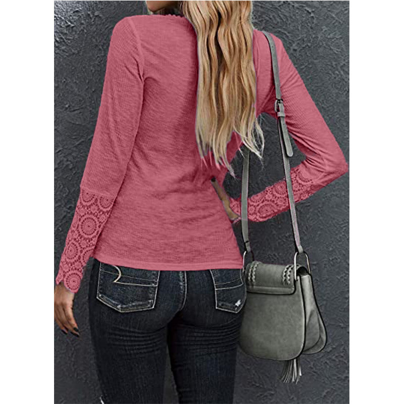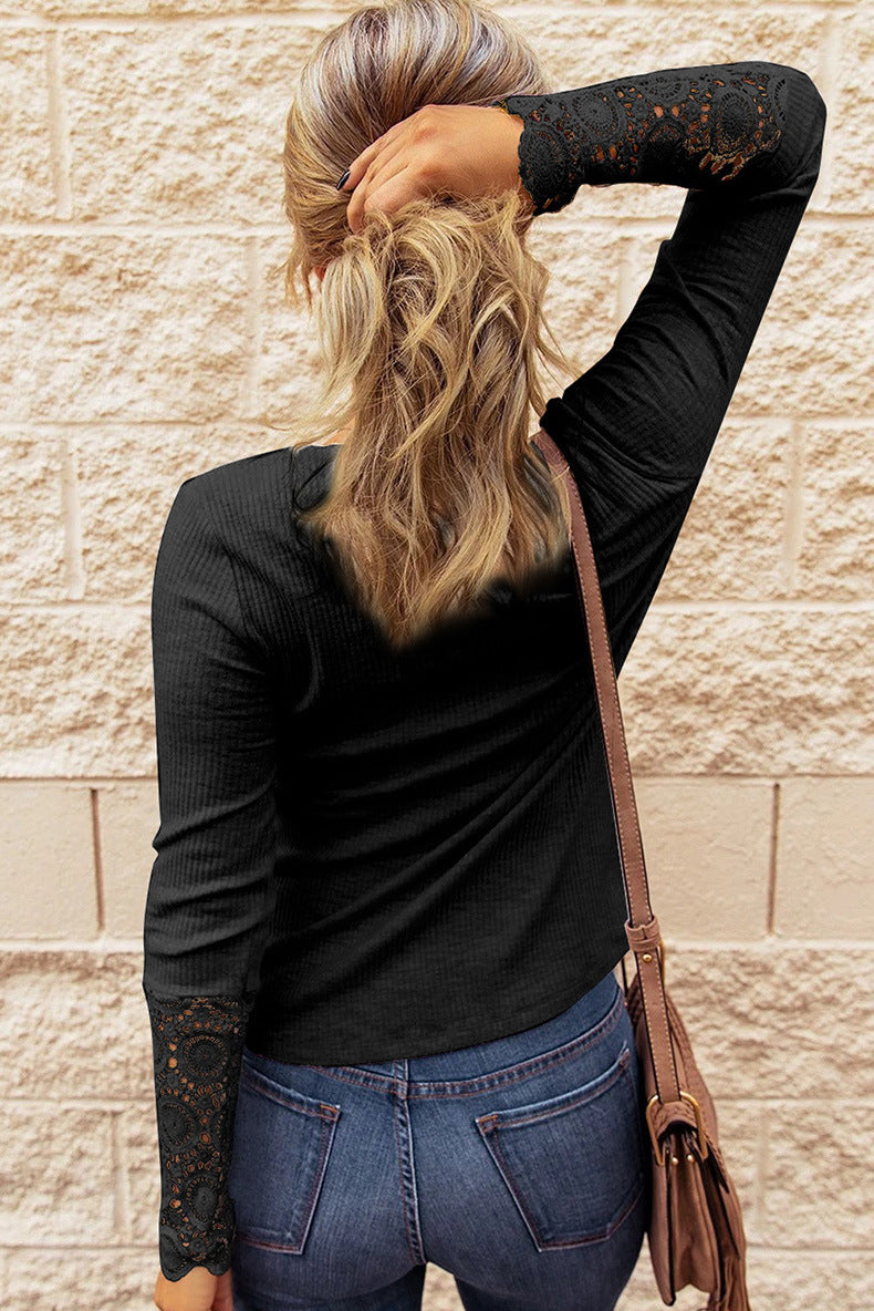 💖👕Koszulka z długim rękawem i koronką zapinana na guziki
