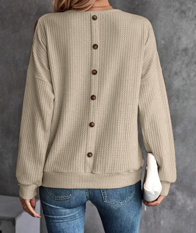 💘 Ten T-shirt łączy w sobie modny krój z odsłoniętymi ramionami i wyjątkową dekoracją guzików, zapewniając nowatorskie wrażenia podczas noszenia i ukazując Twój czarujący urok mody! 👚✨