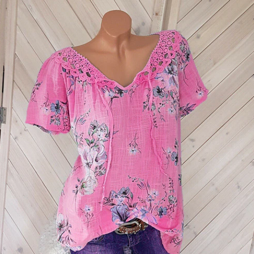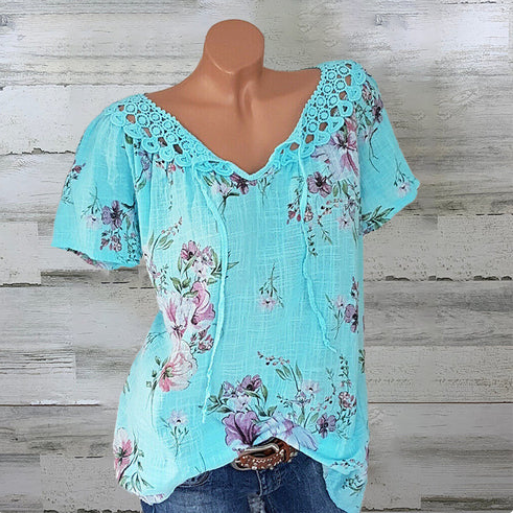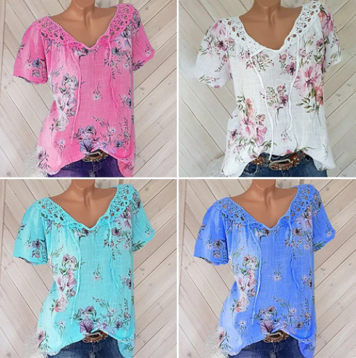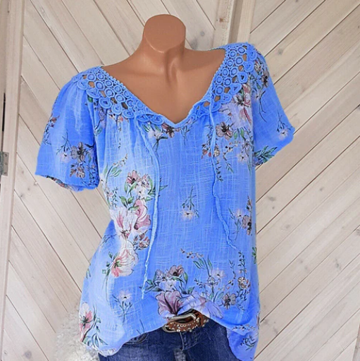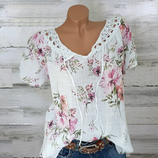 1 * Koronkowy top damski z kwiatowym nadrukiem i dekoltem w szpic