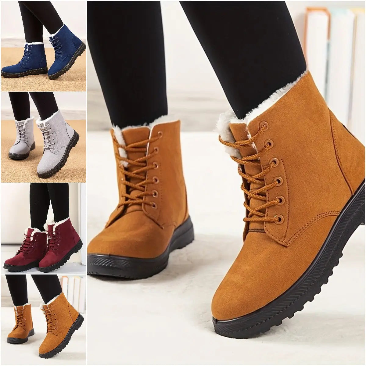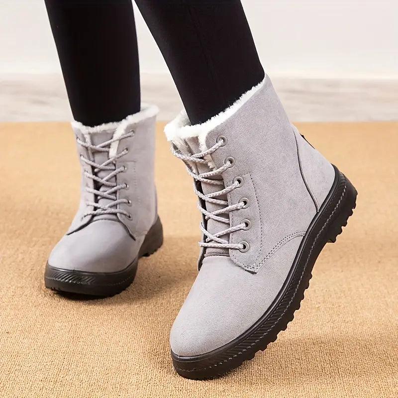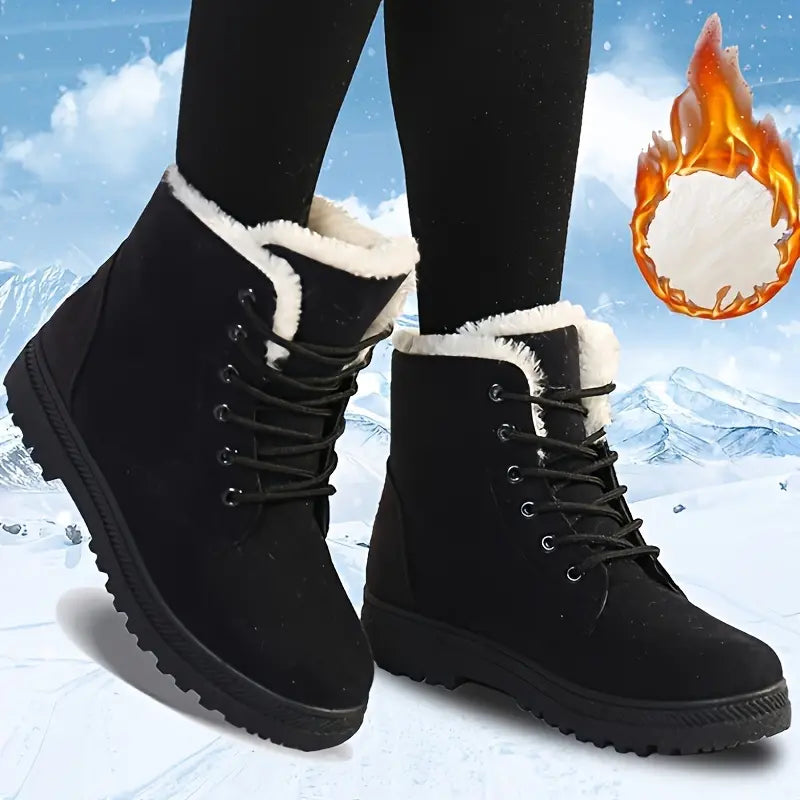 [Ciepła wyściółka ze sztucznego futra]: Te wytrzymałe damskie śniegowce mają grubą wyściółkę ze sztucznego futra i język, które zapewniają większy komfort i utrzymują stopy w cieple przez cały dzień.