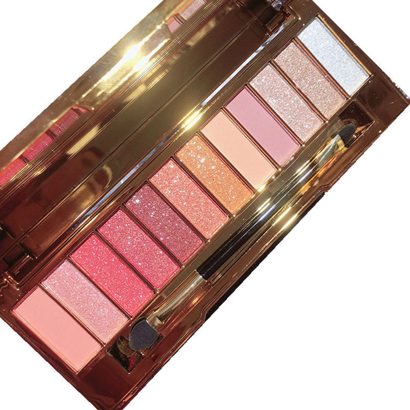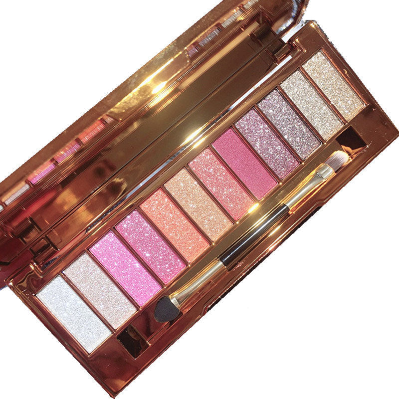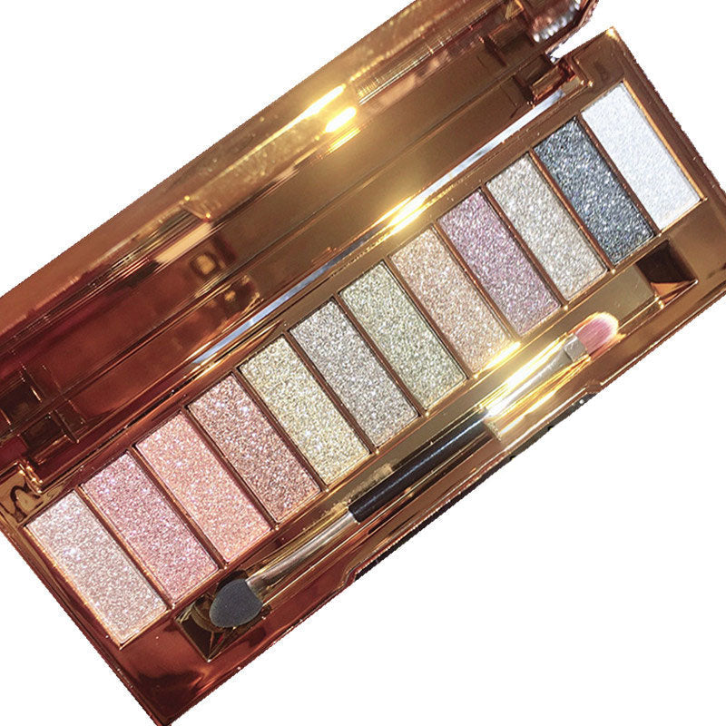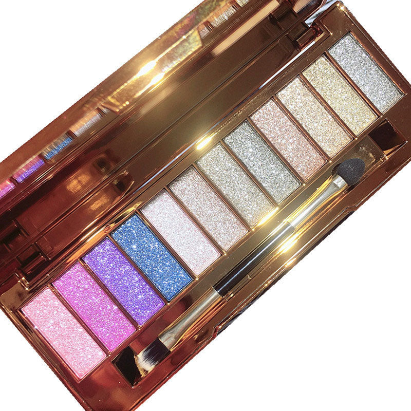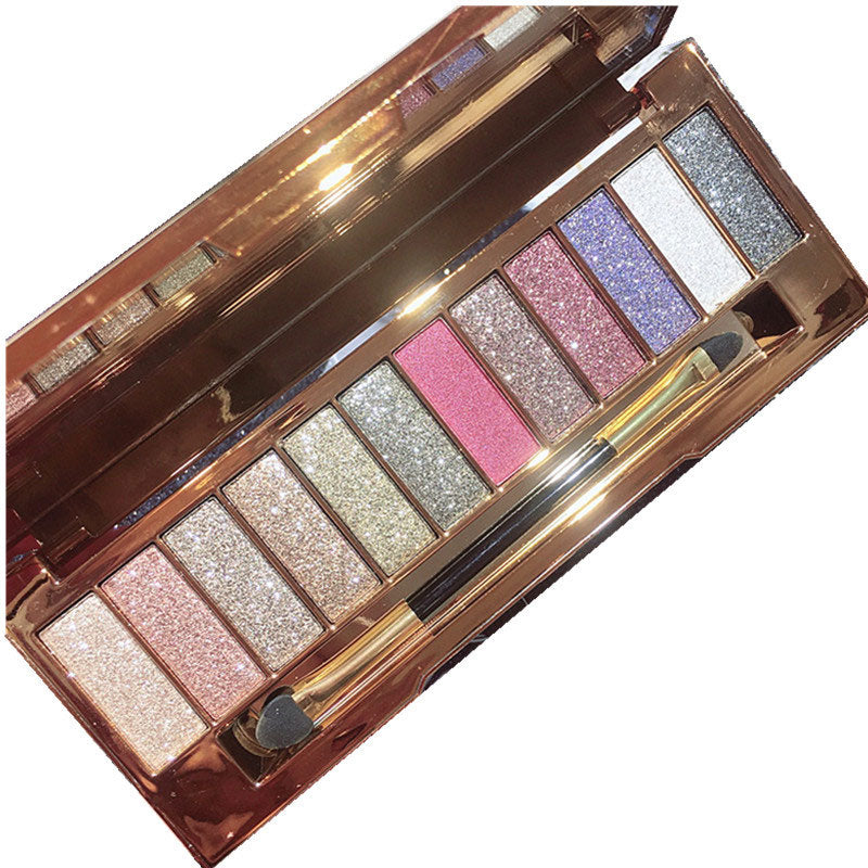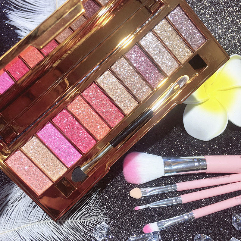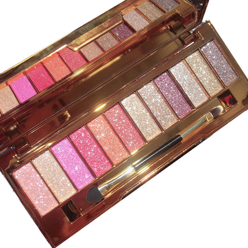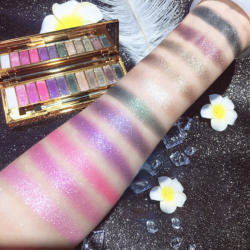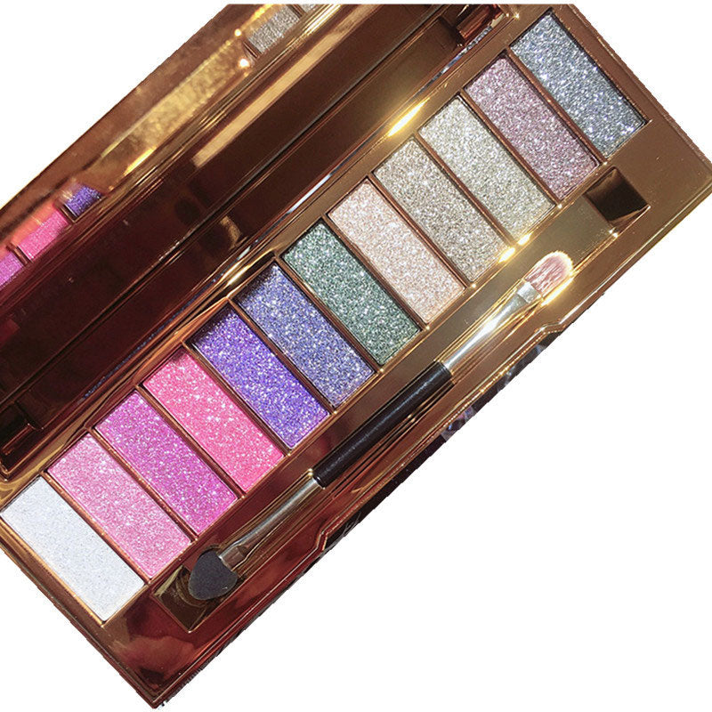 Uwolnij swój wewnętrzny blask dzięki naszej wysoce napigmentowanej 12-kolorowej palecie cieni do powiek z brokatem, pędzelkiem i lusterkiem.