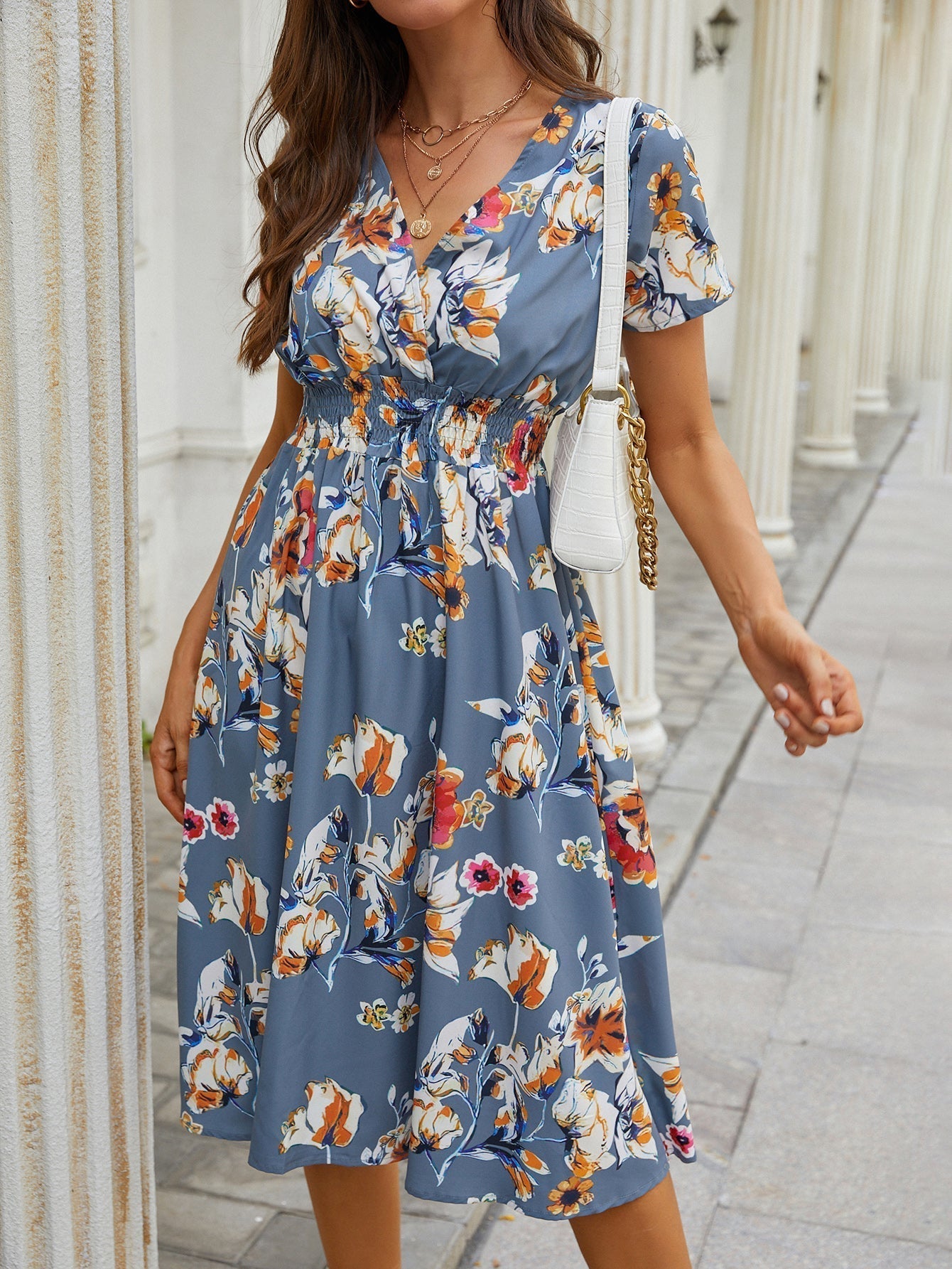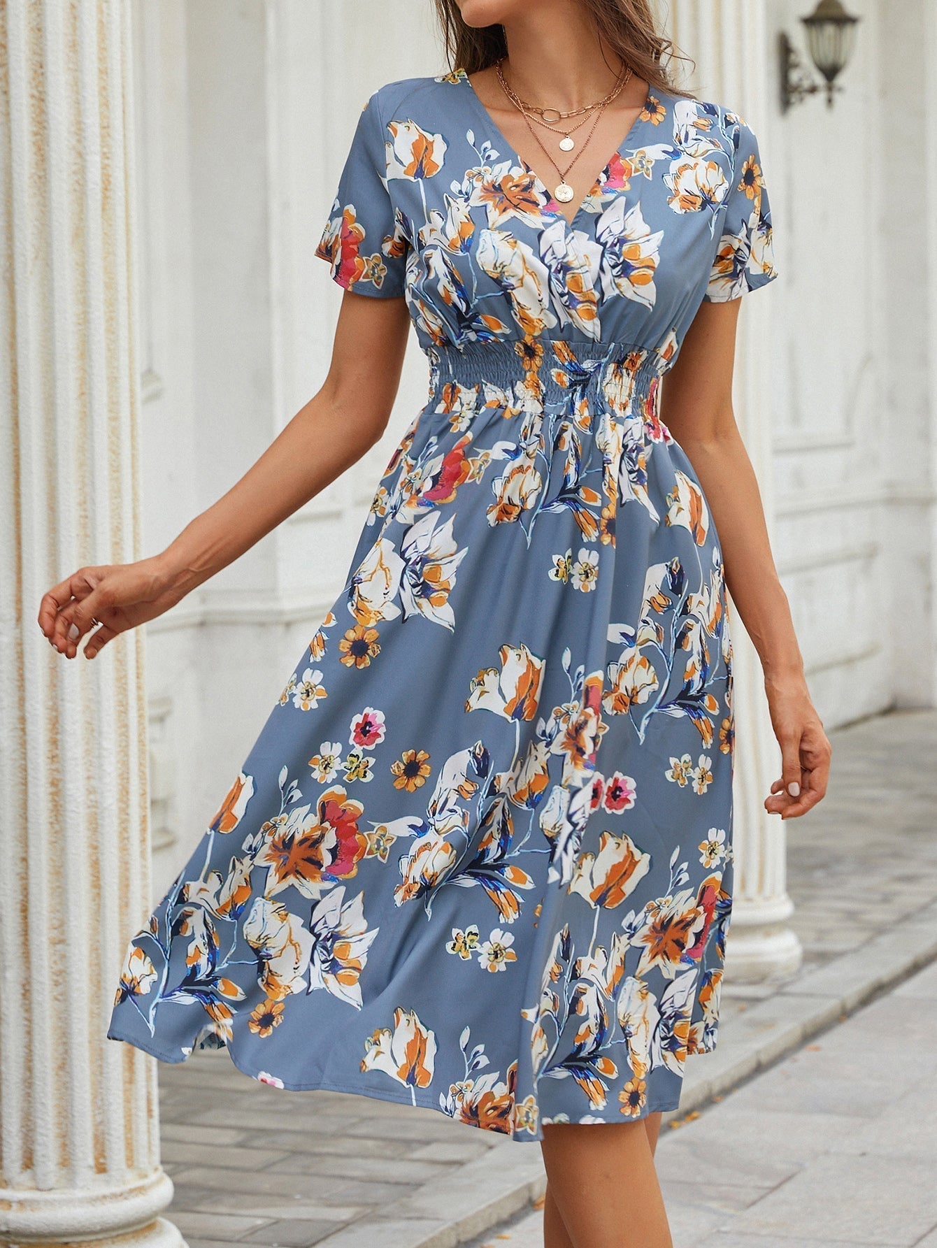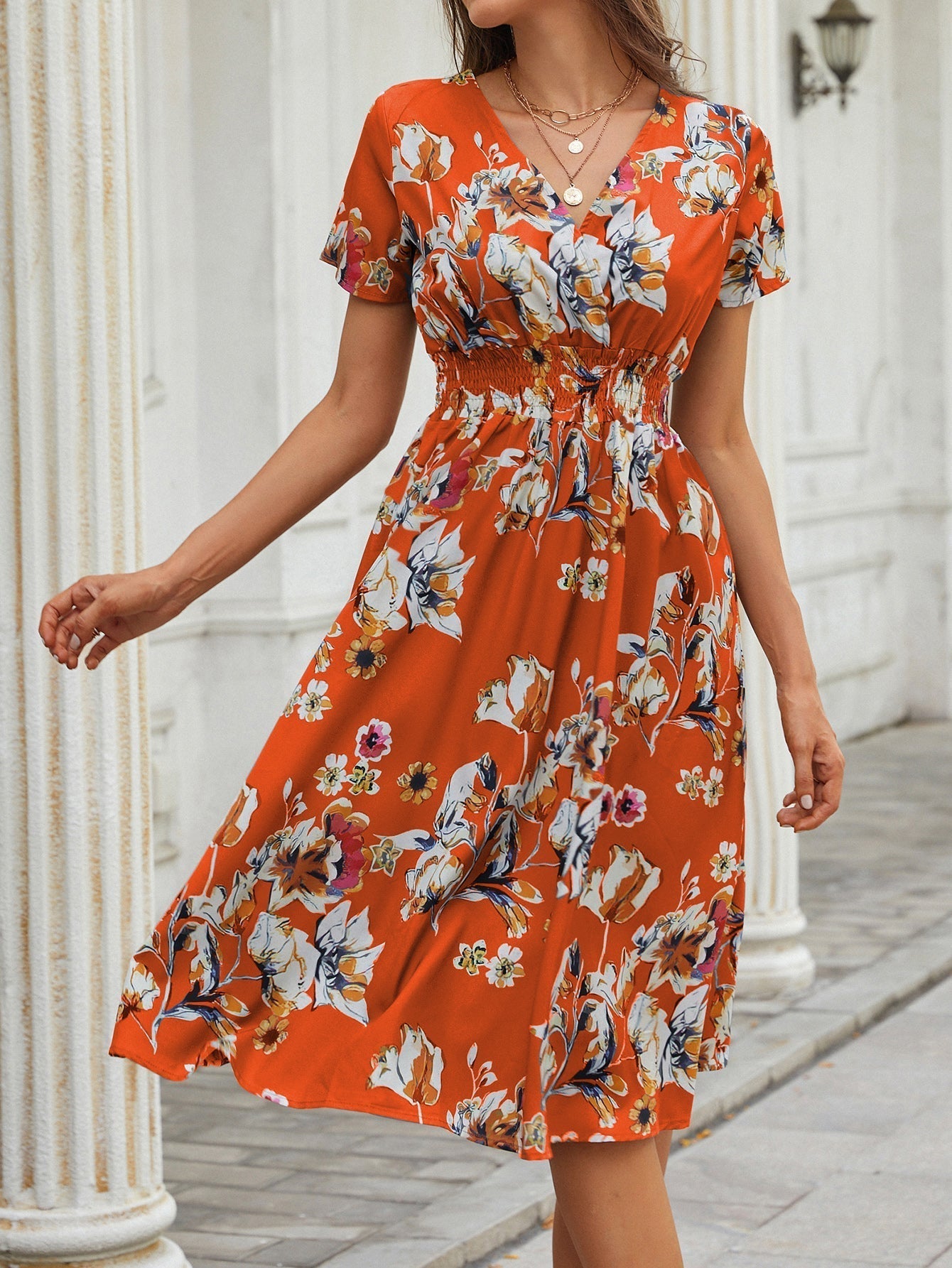 Tę sukienkę z krótkim rękawem można nosić z kapeluszem, okularami przeciwsłonecznymi, torebką, szpilkami, płaskimi butami lub sandałami. Idealna z naszyjnikami, bransoletkami, kolczykami i innymi akcesoriami.💃
