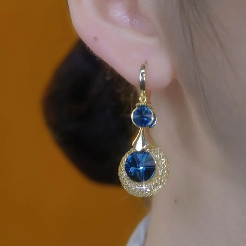 ✨[Kup 1, a 1 otrzymasz gratis]🎁🎁2024 Luksusowe kolczyki z niebieskiego kryształu w złotym kolorze w gorącym stylu 🔥🔥