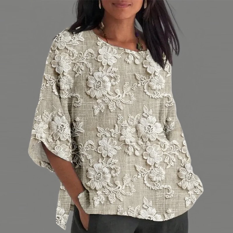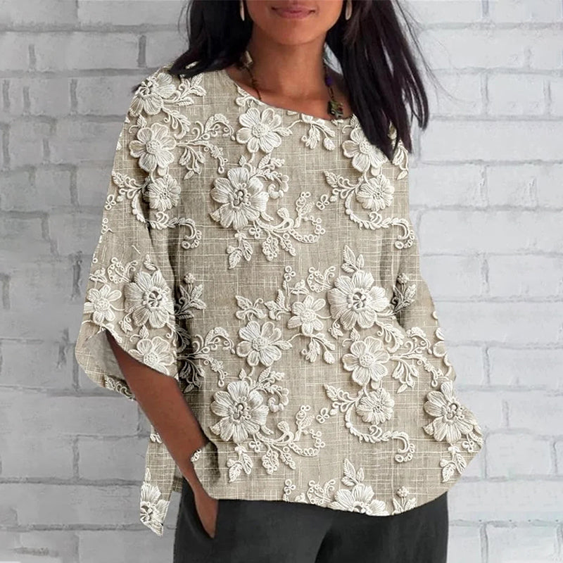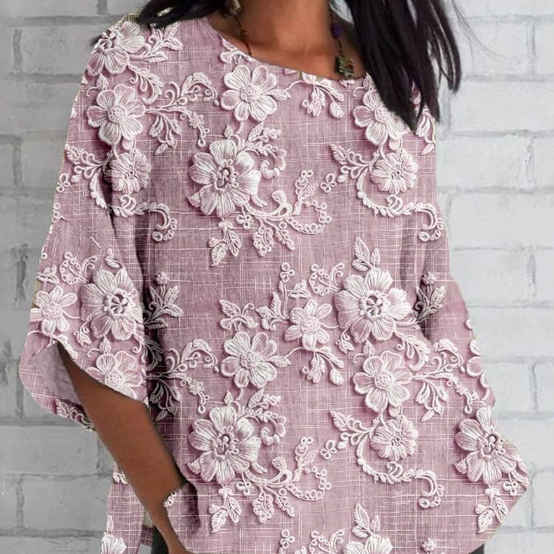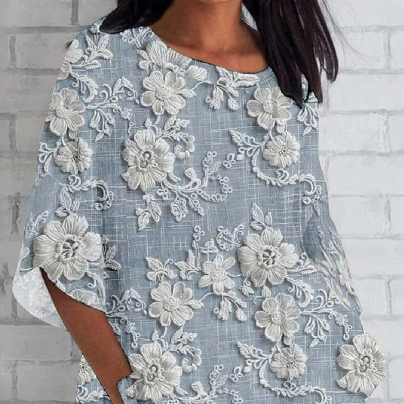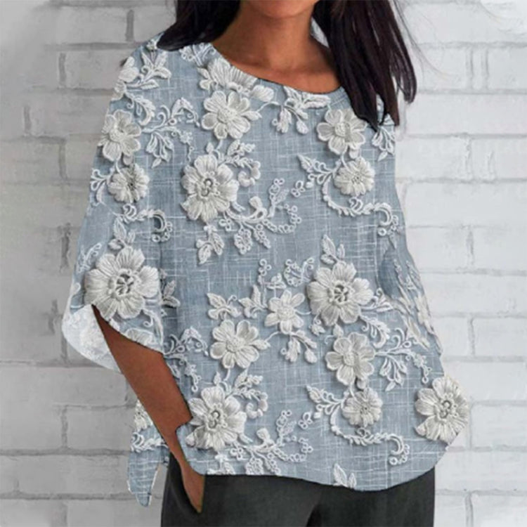 Pakiet obejmuje: 1 × 3/4 rękawy 3D kwiatowy druk luźny top
