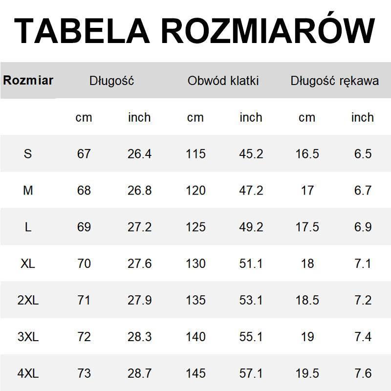 Rozmiar: S, M, L, XL, 2xl, 3xl, 4xl