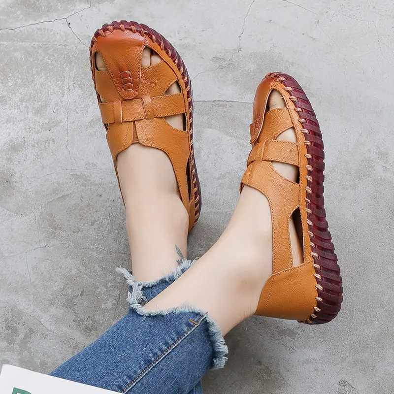 [35~43]Płaskie sandały damskie wykonane z miękkiej skóry naturalnej