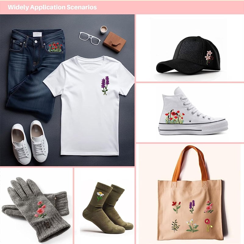 Te stabilizatory haftu można mieszać i dopasowywać, co pozwala na użycie różnych ściegów hafciarskich i kolorowych nici w celu stworzenia niepowtarzalnych i wykwintnych wzorów na tkaninie.
