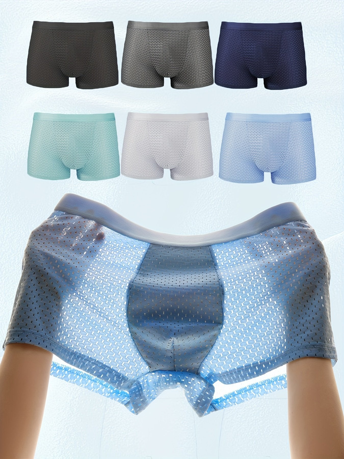 6 sztuk bielizny męskiej lodowy jedwab fajne bokserki szorty siatka grafenowa antybakteryjna wewnętrzna oddychająca wygodne rozciągliwe bokserki szczegóły 1