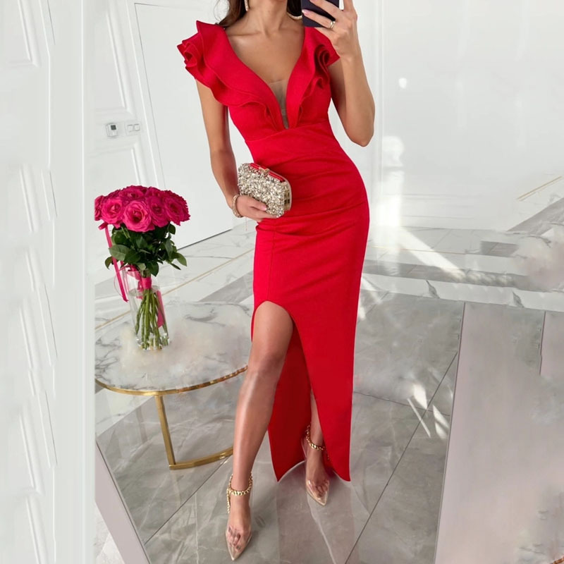 Nowa letnia sukienka z dekoltem w kształcie litery V, bez rękawów i rozcięciem w talii