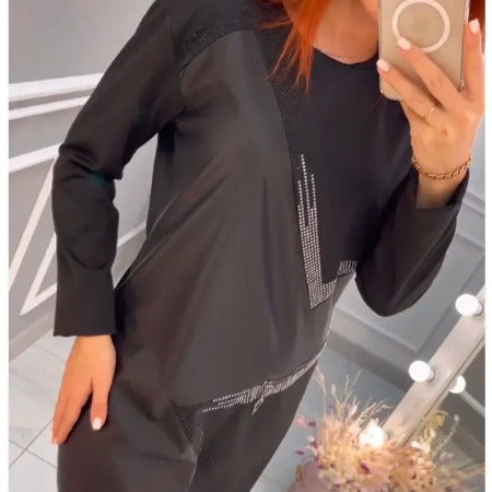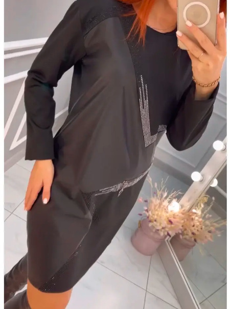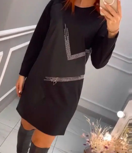 Nowa modna patchworkowa sukienka z okrągłym dekoltem