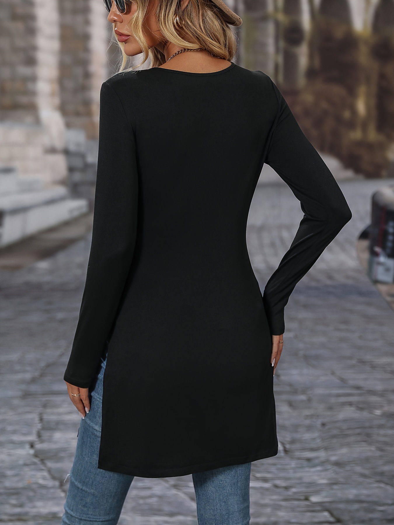 Wyszczuplająca sukienka z długim rękawem i rozcięciem