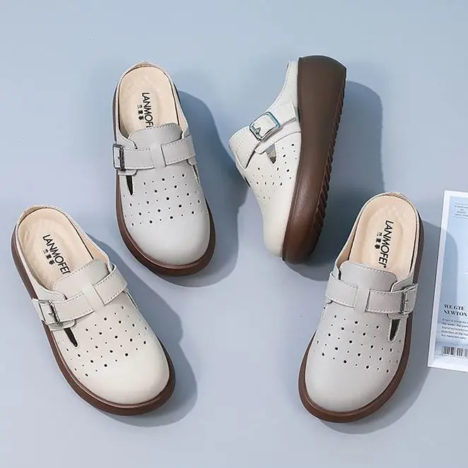 【35-42】Puste, oddychające, grube, miękkie, skórzane kapcie