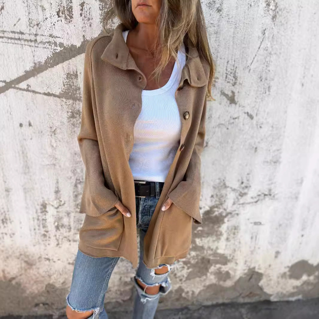 🍂Modny design: Ta dzianinowa marynarka z klapami łączy w sobie klasykę i nowoczesność, doskonale podkreślając Twój niepowtarzalny gust!