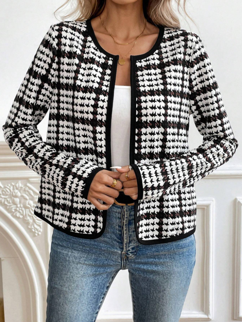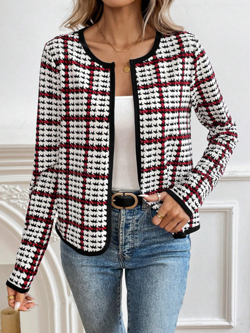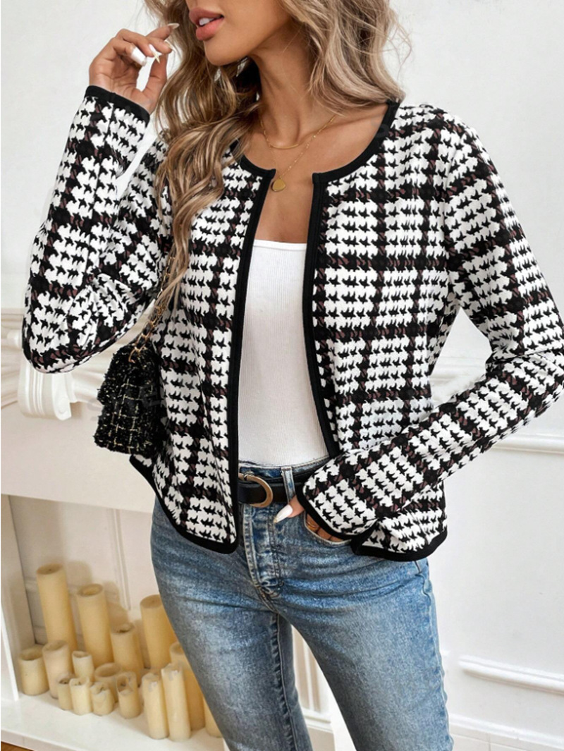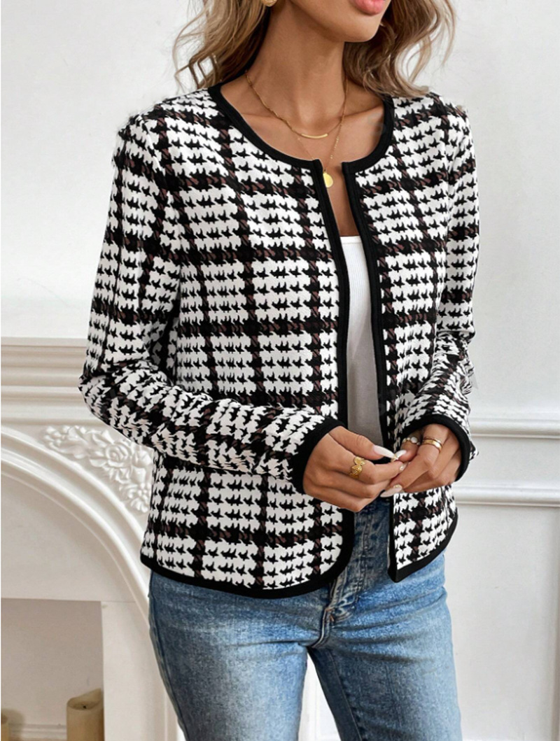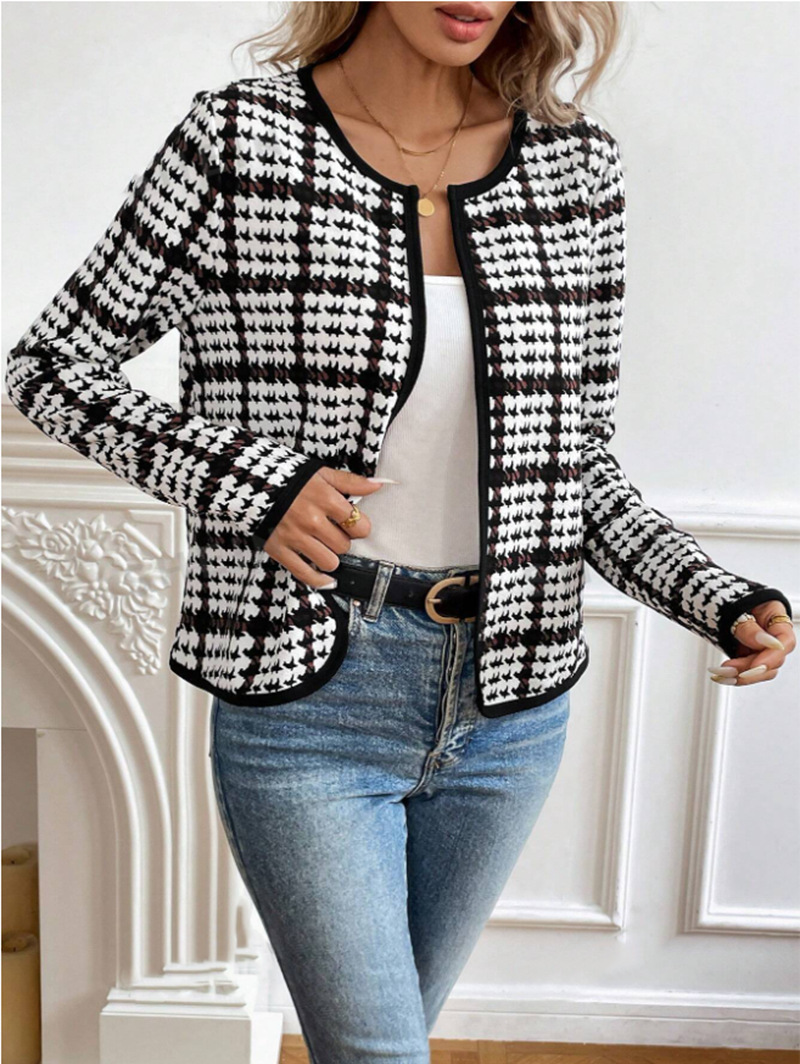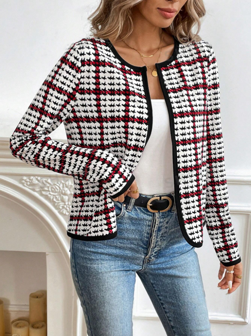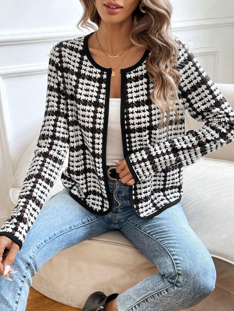 Jesienna kurtka kardigan zapinana na zamek, w małym stylu
