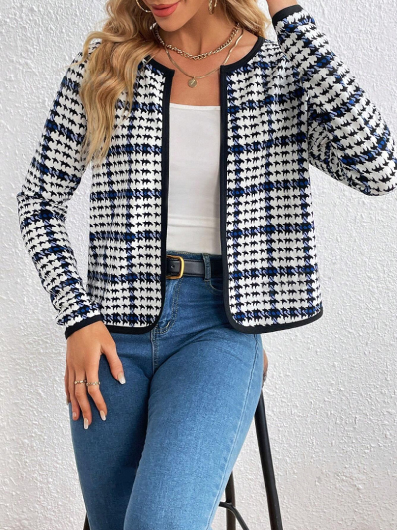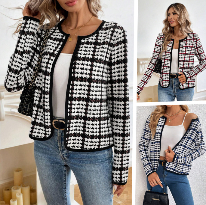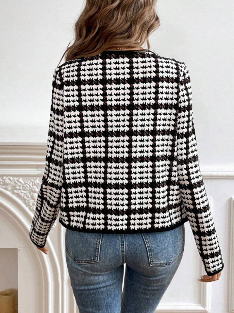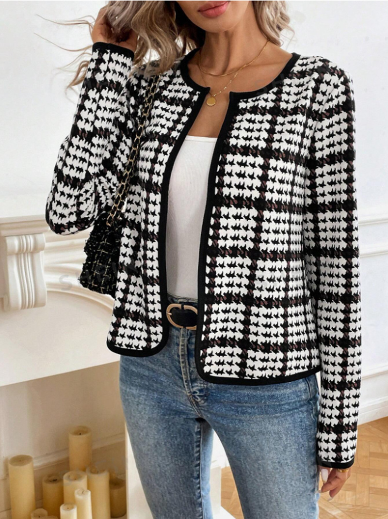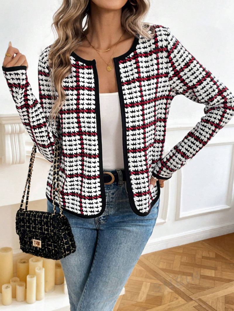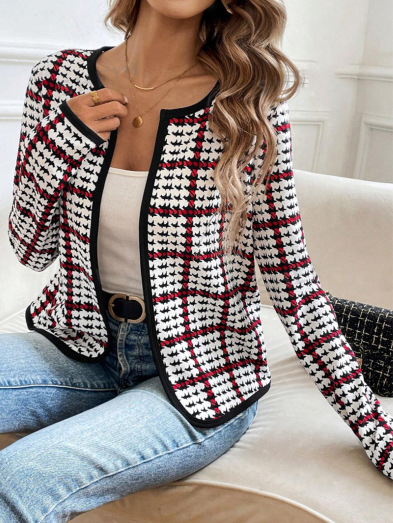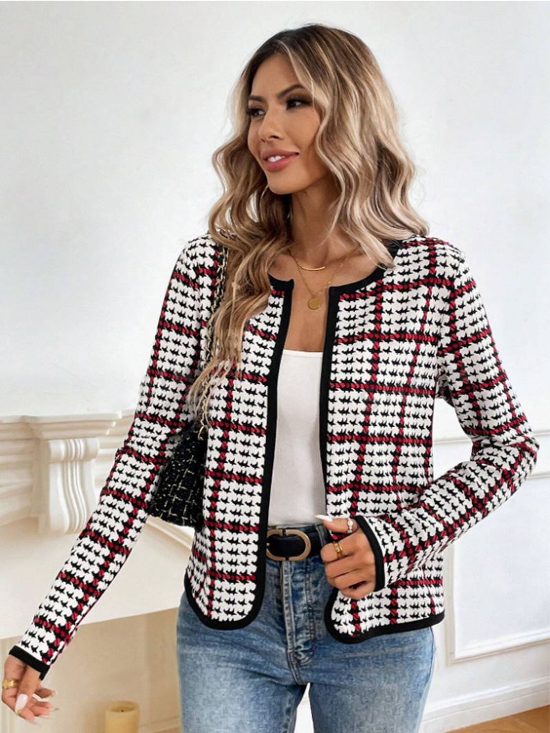 Jesienna kurtka kardigan zapinana na zamek, w małym stylu