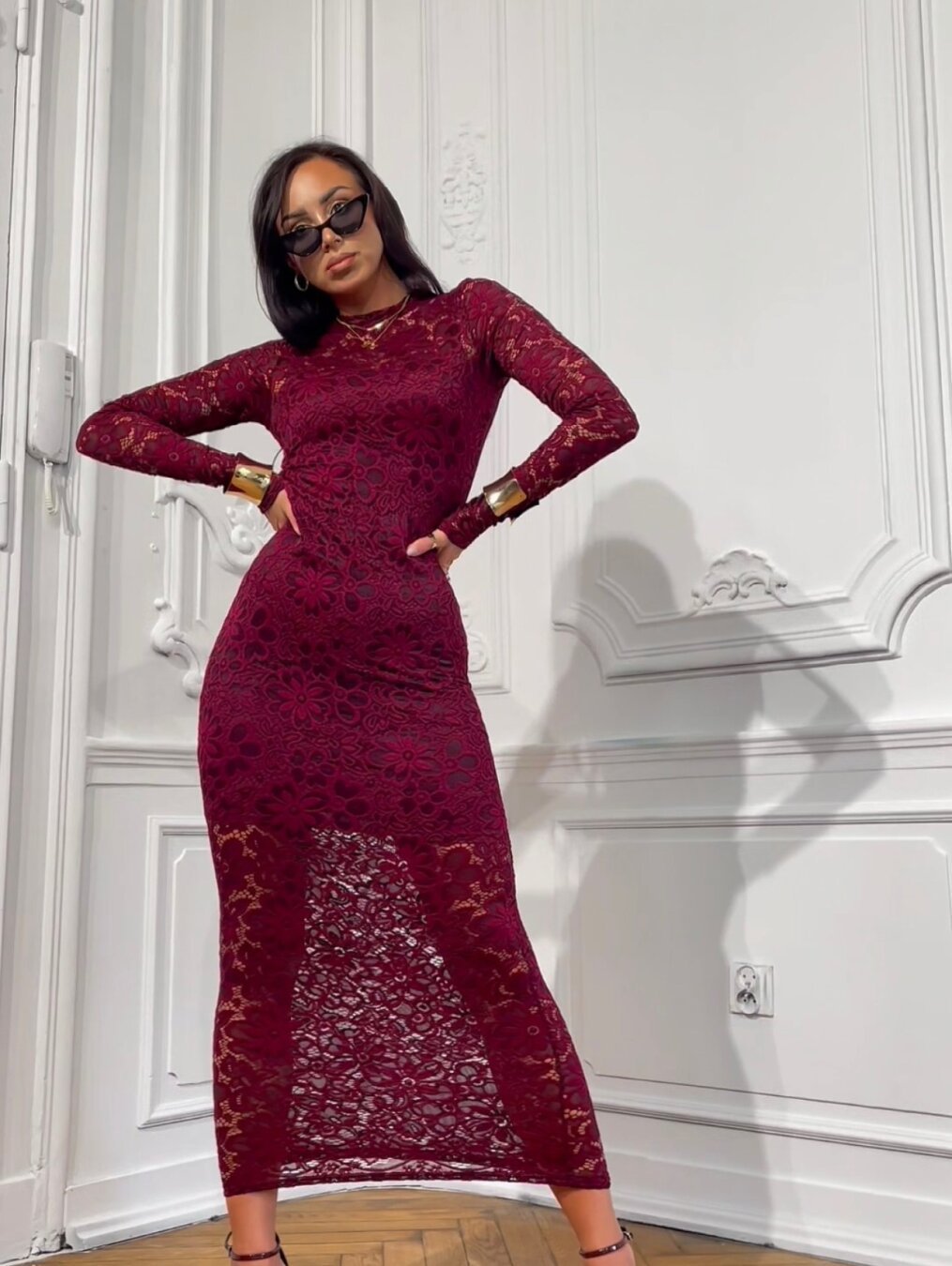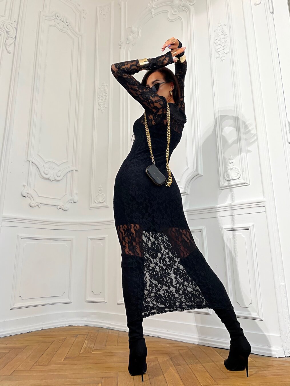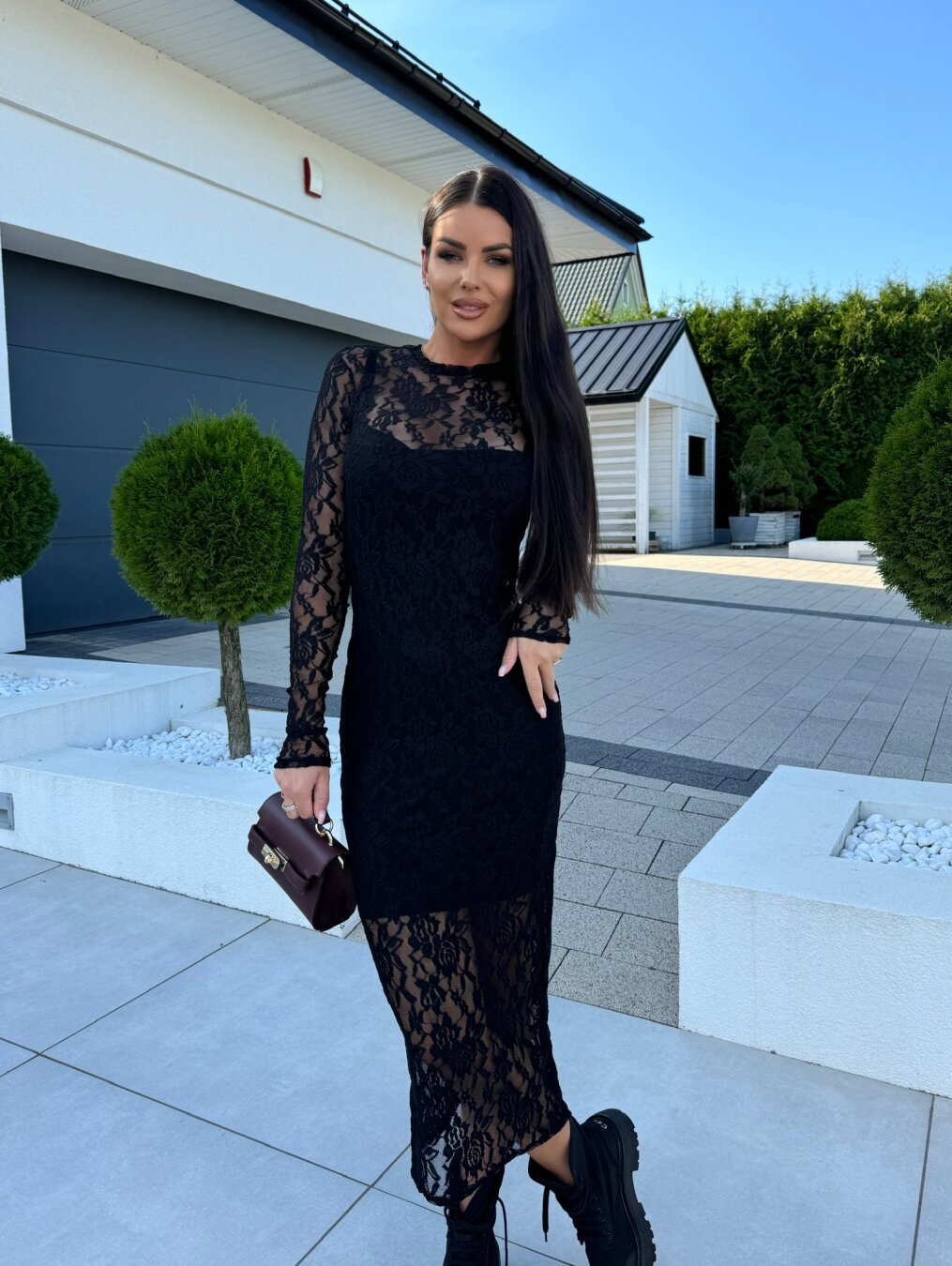 Koronkowa, elegancka, długa spódnica sięgająca bioder