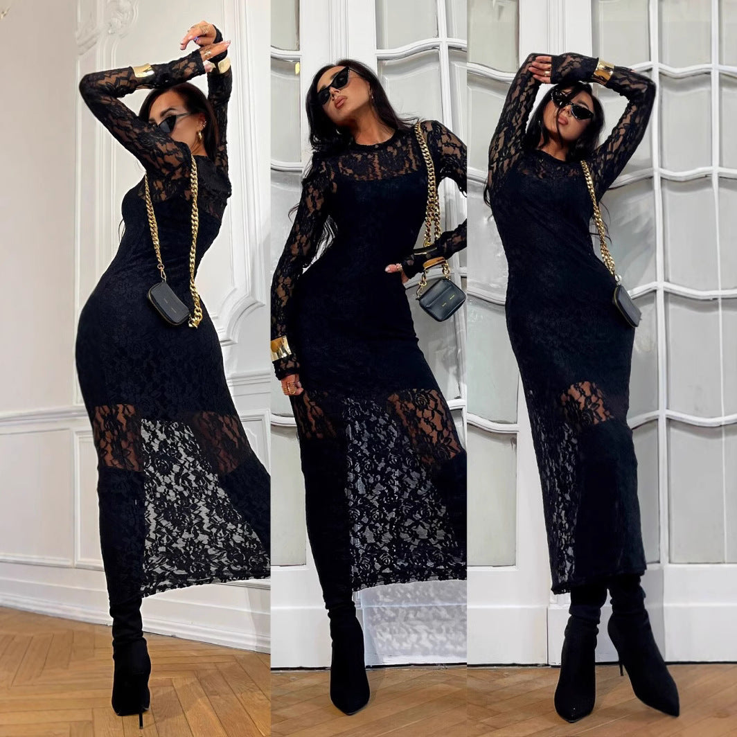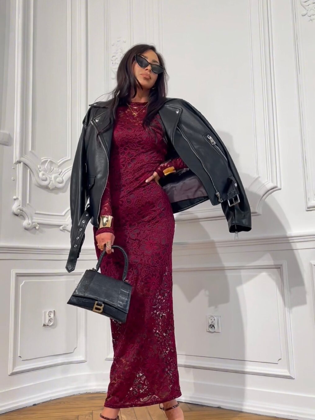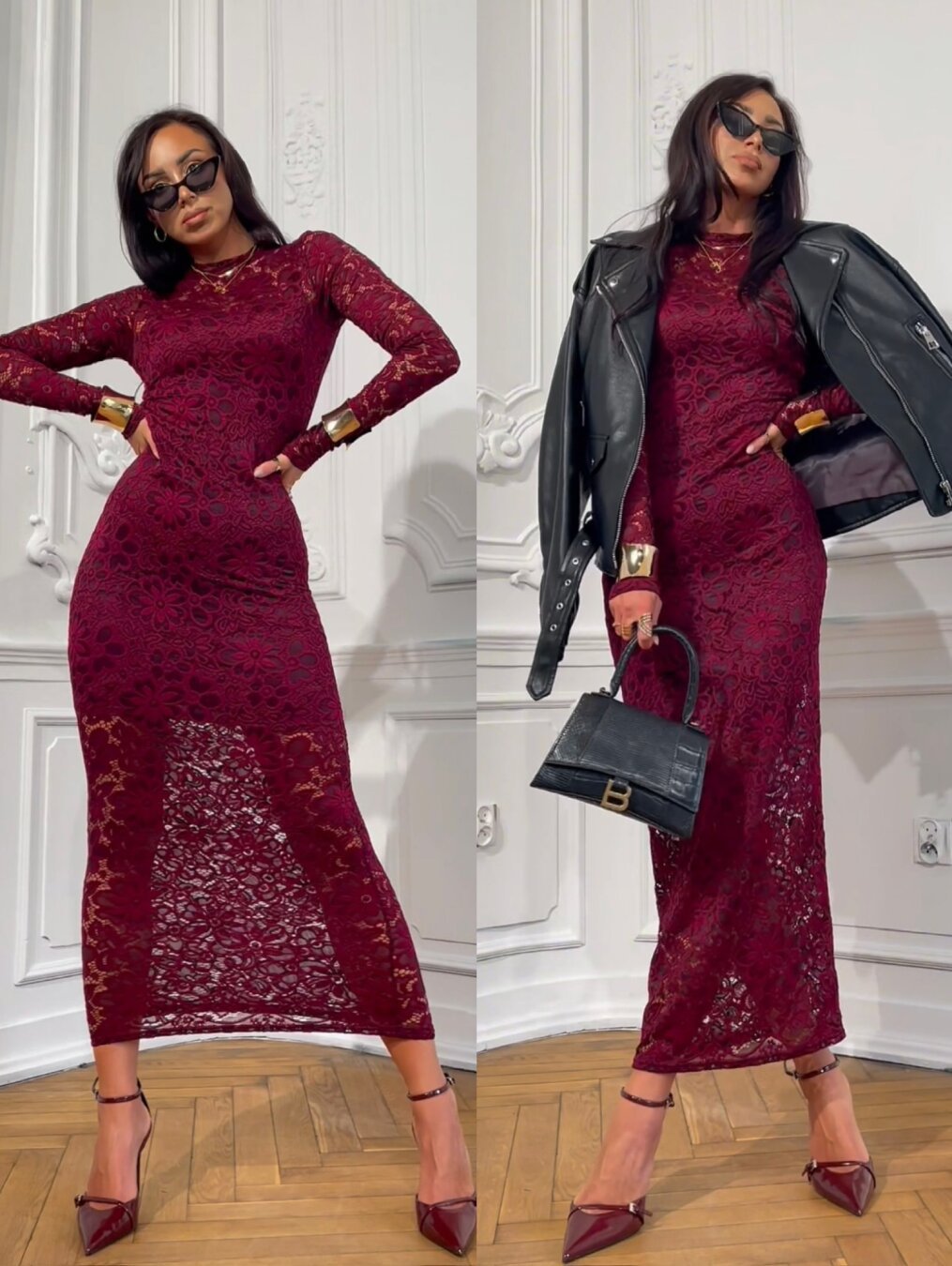 Koronkowa, elegancka, długa spódnica sięgająca bioder