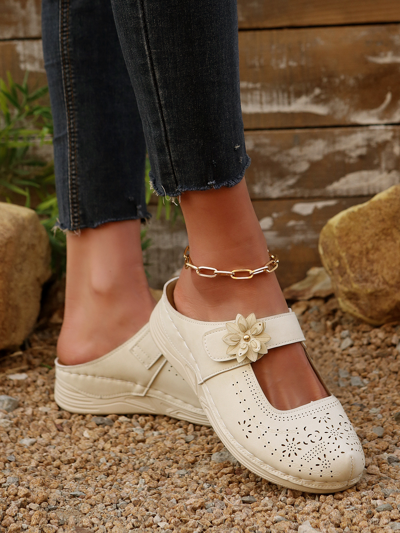 Letnie sandały na grubej podeszwie z siateczki z wycięciami