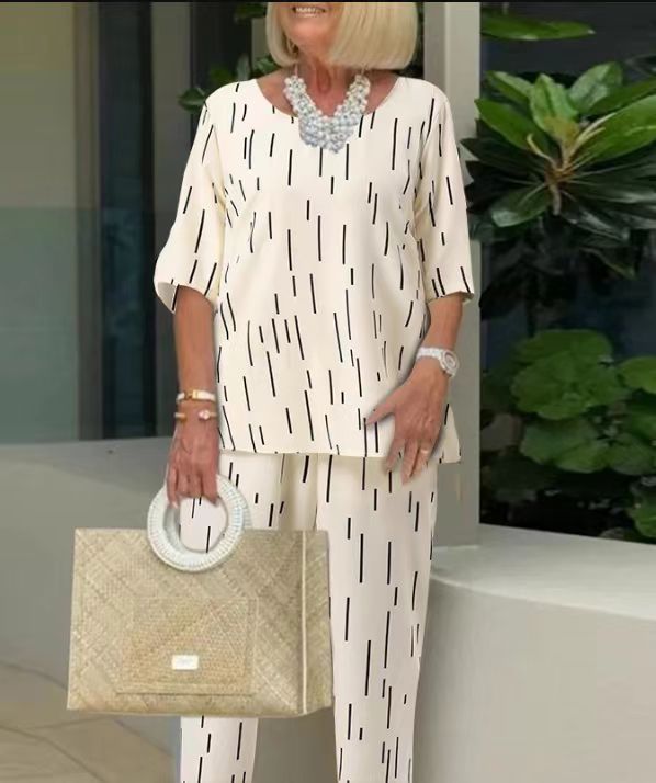 💥🔥[Top + Spodnie]2025, wiosna i lato, nowa moda, okrągły dekolt, rękaw pięć czwartych, luźny dwucz