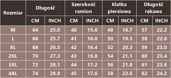 | rozmiar | M, L, XL, XXL, XXXL, 4XL |