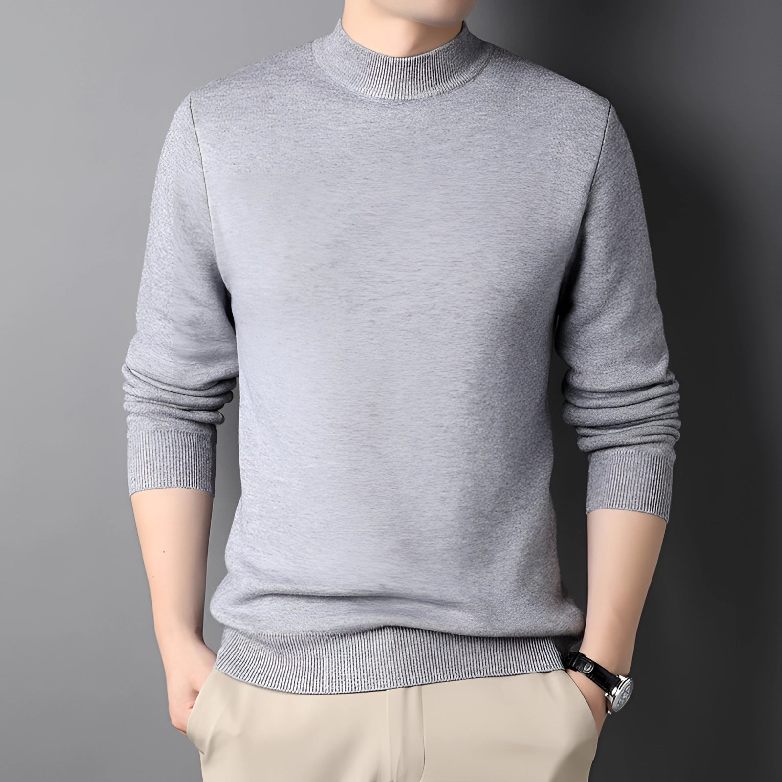 | 1 - Beżowy, lekki męski sweter z okrągłym dekoltem , swobodny, elegancki sweter | |