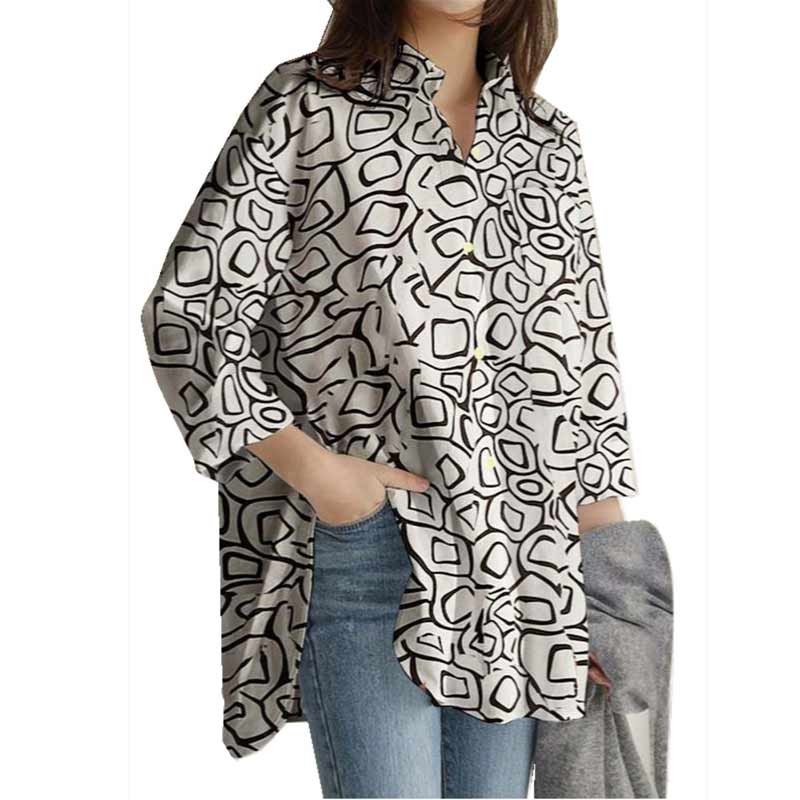 Nadruk, klapa, przycięte rękawy, rozcięty dół