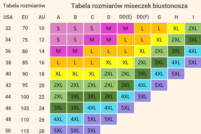 Wiemy, że zakup biustonosza może być nieco kłopotliwy, ponieważ różne marki mają różne rozmiary, ale nasze rozmiary są zgodne z amerykańskimi standardami, więc zawsze znajdziesz idealne dopasowanie. Nasza tabela rozmiarów obejmuje wszystkie podstawowe rozmiary, z szeroką gamą rozmiarów plus size dla każdego!