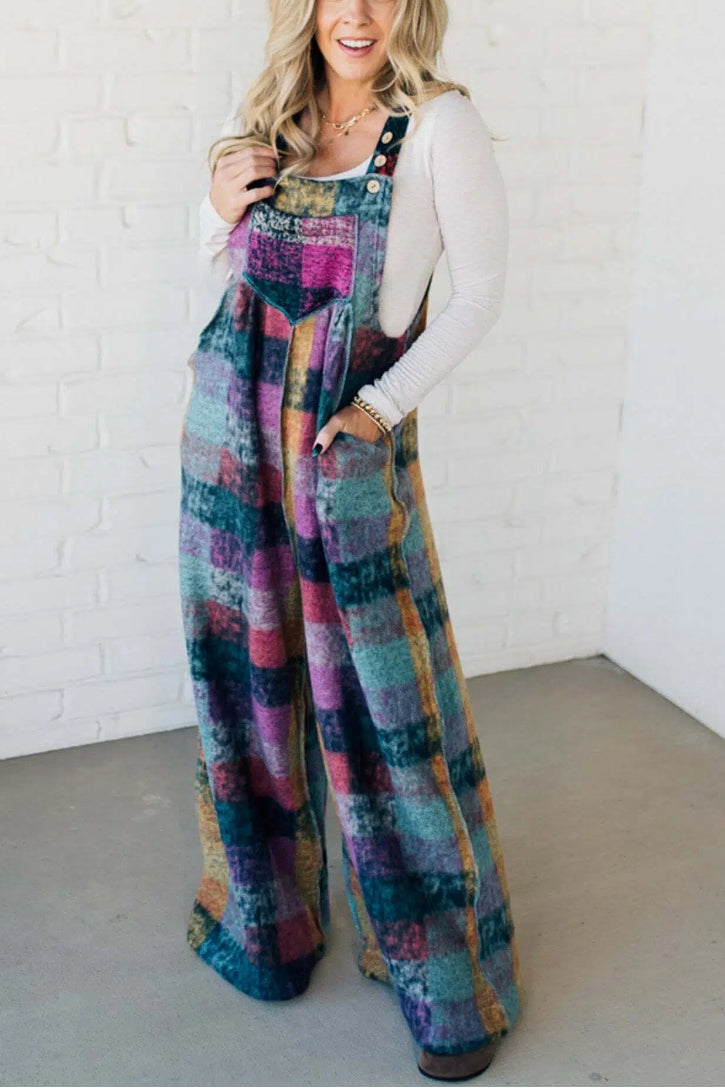 Dodaj trochę sass do swojej garderoby dzięki naszym szczotkowanym wielofunkcyjnym kombinezonowi! Te miękkie i przytulne kombinezony mają zabawny wielokolorowy wzór w kratę i ultra szeroką dopasowanie nóg. Regulowane paski przyciskowe zapewniają konfigurowalne i wygodne dopasowanie. Idealny dodatek dla tych, którzy chcą złożyć oświadczenie (i zachować ciepło!) W tym sezonie.