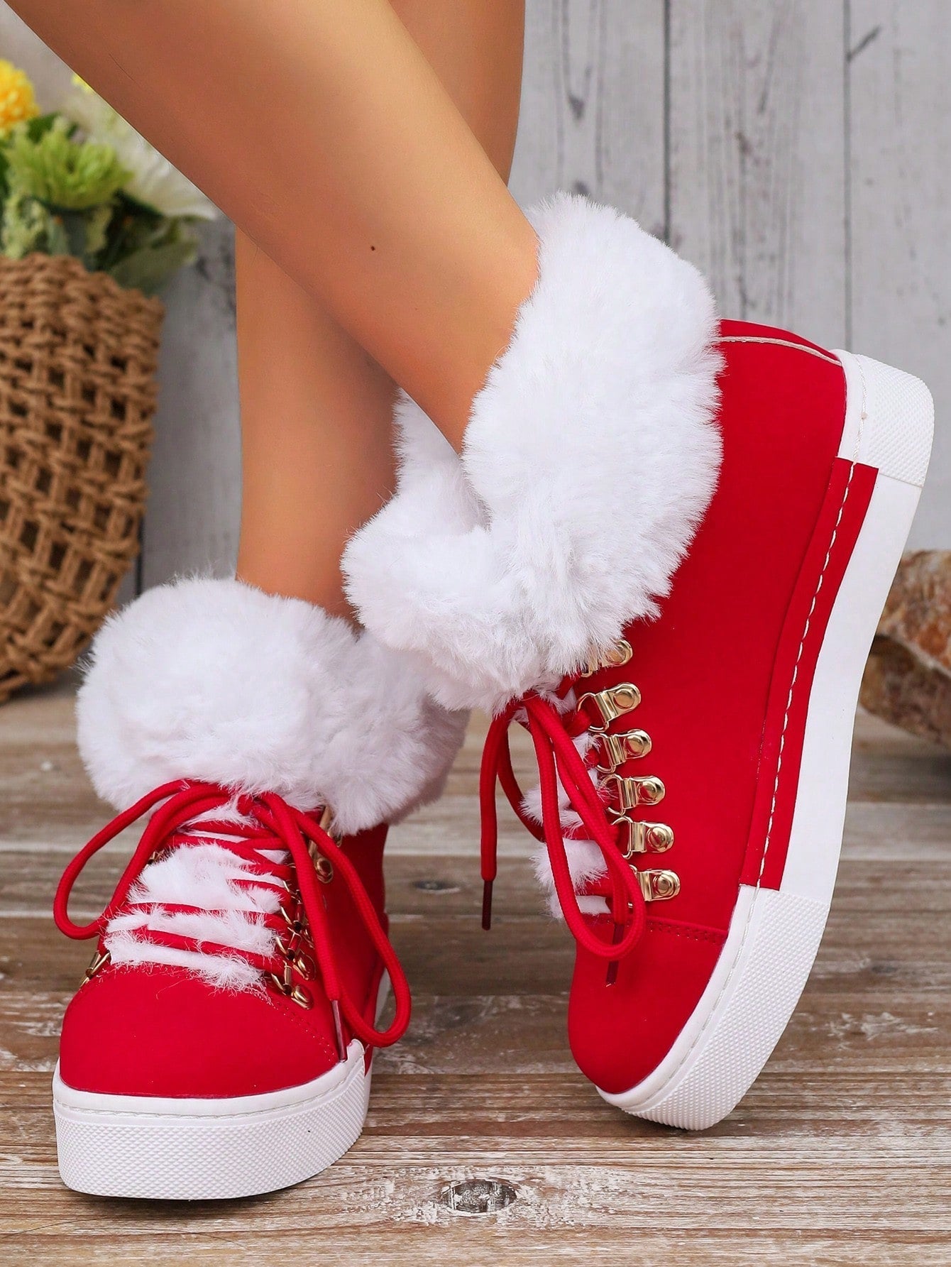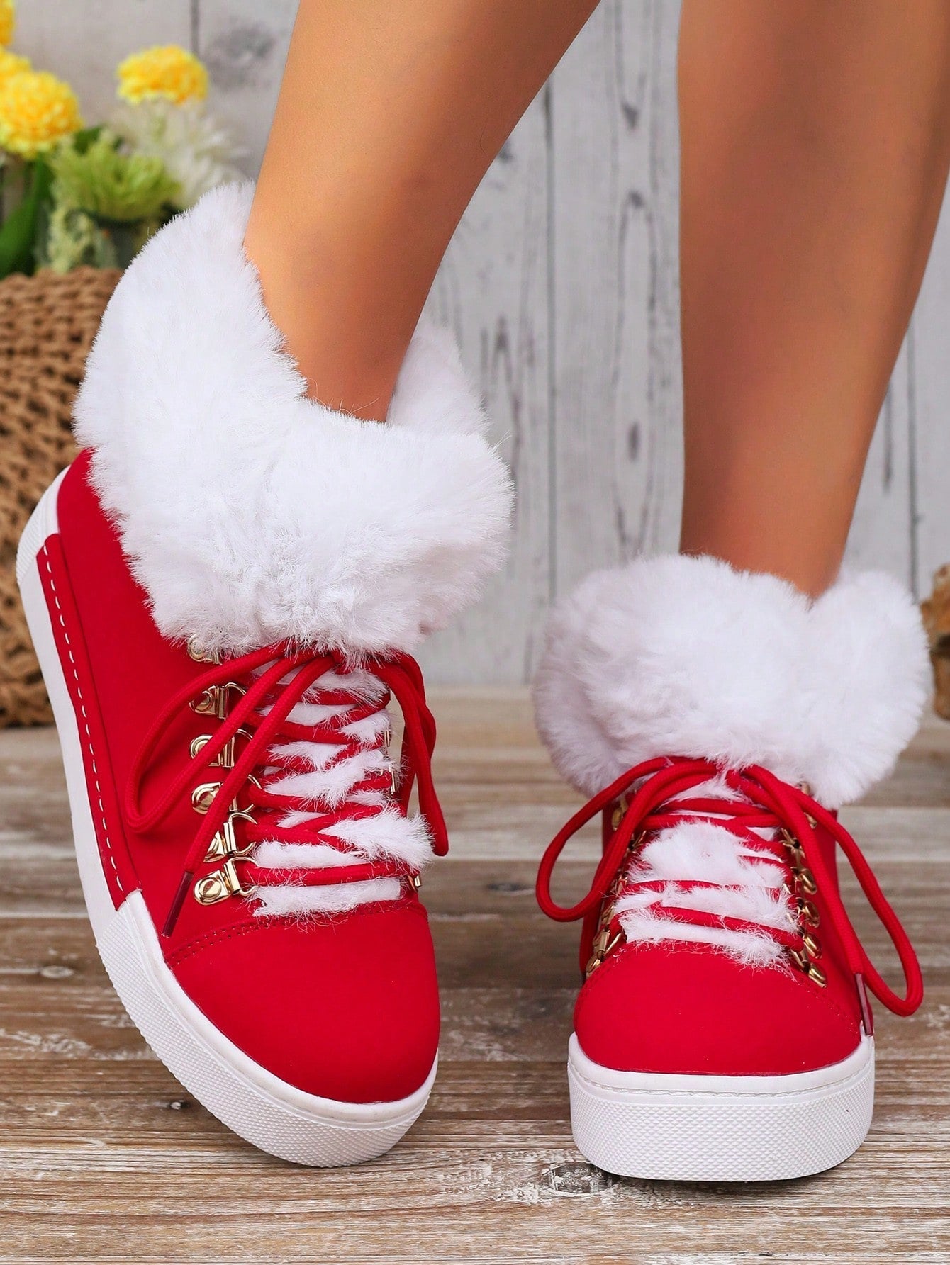 Te puszyste buty są idealne na jesienne dni. Dzięki radosnemu i świątecznemu wyglądowi idealnie nadają się na przyjęcia bożonarodzeniowe i zimowe spotkania. Wygodna, płaska podeszwa sprawia, że możesz cieszyć się tymi butami przez cały dzień.