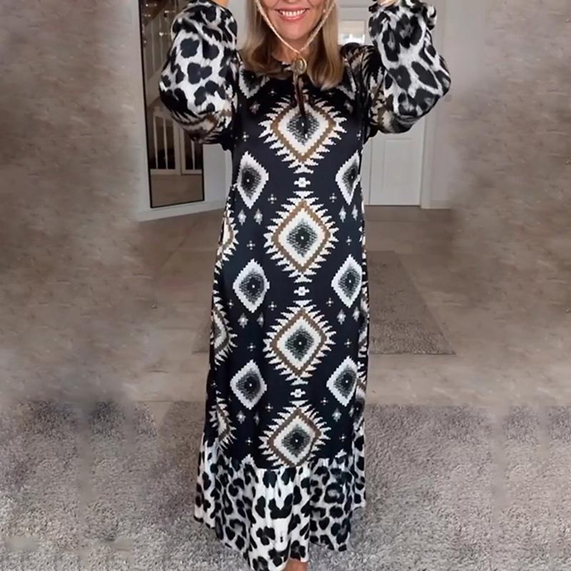 Pakiet zawiera: 1 * Damska sukienka z długim rękawem w stylu boho, z nadrukiem