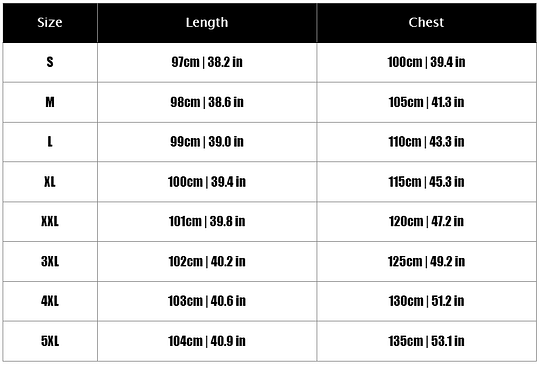 Dostępne rozmiary: S, M, L, XL, 2XL, 3XL, 4XL, 5XL