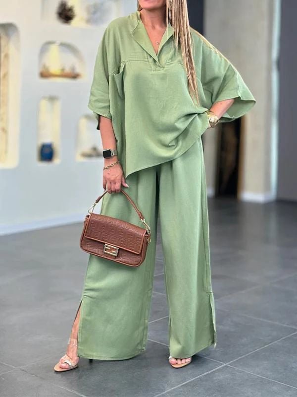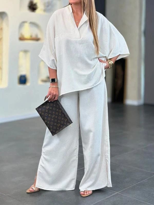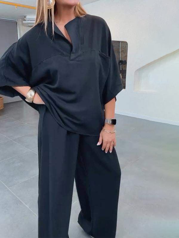 Lekki i oddychający. Spodnie damskie, elastyczne spodnie z wysokim stanem i szerokimi nogawkami do kostek z funkcjonalnymi kieszeniami, ten zestaw jest chłodny i jedwabisty, zapewniając maksymalny komfort podczas gorących, letnich dni. Luźna koszula z krótkim rękawem i spodnie z szerokimi nogawkami zapewniają swobodę ruchu i swobodny krój.