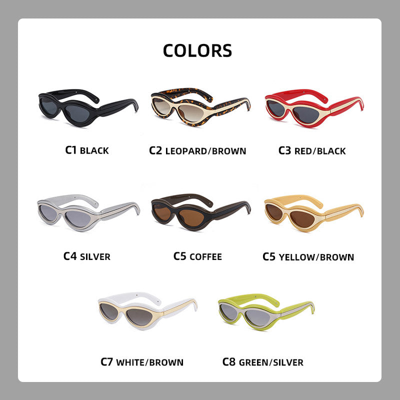 Okulary przeciwsłoneczne w kolorze kocich oczu, które zapewniają wrażenia wizualne w wysokiej rozdzielczości, unikalny kształt i ochronę przed promieniowaniem UV, pozwalają cieszyć się słońcem, jednocześnie wykazując się elegancją. Dostępnych jest wiele kolorów, dzięki czemu z łatwością dopasujesz je do każdego stroju.