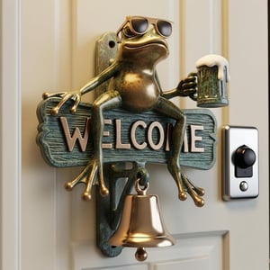 🍻🐸 Poznaj swój nowy ulubiony komitet powitalny! Ta absolutnie odjazdowa, w okularach przeciwsłonecznych żaba odpręża się z piwem w dłoni, gotowa krzyknąć beztrosko „WITAMY!” każdemu, kto podejdzie do Twoich drzwi. To coś więcej niż tylko dzwonek do drzwi – to eksplozja osobowości, która z pewnością wywoła uśmiech i nada ton zabawnej wizycie.