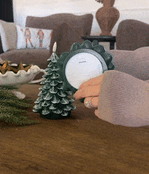 Wykonana z prawdziwego zielonego wosku i pokryta sztucznymi płatkami śniegu, ta bezpłomieniowa świeca choinkowa wygląda jak choinka w śniegu. Po zapaleniu bezpłomieniowej świecy ciepłe, białe światło LED będzie delikatnie migać, tworząc piękną i marzycielską świąteczną atmosferę.
