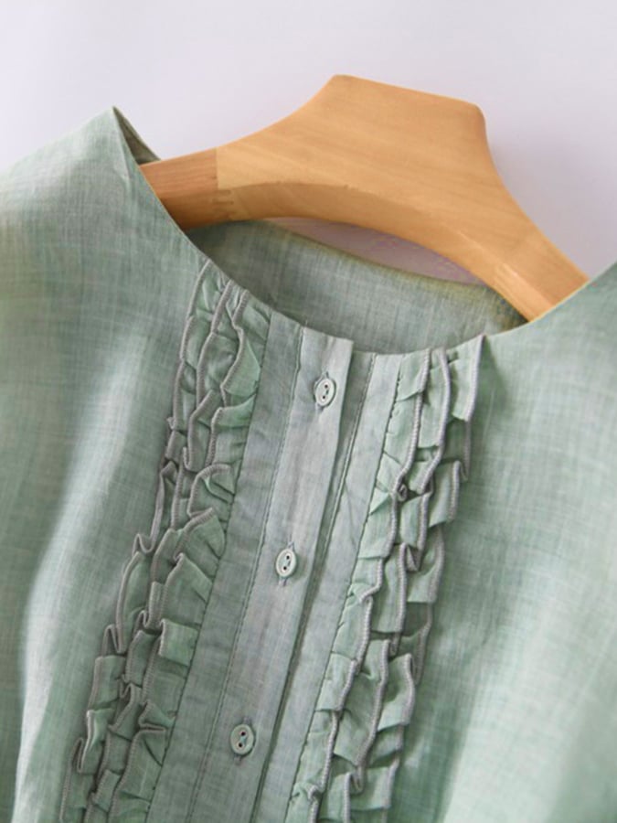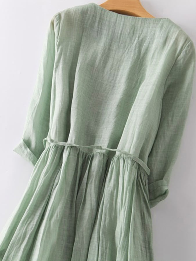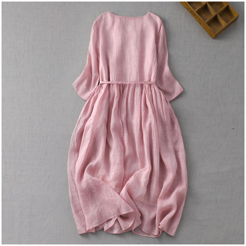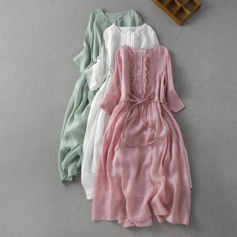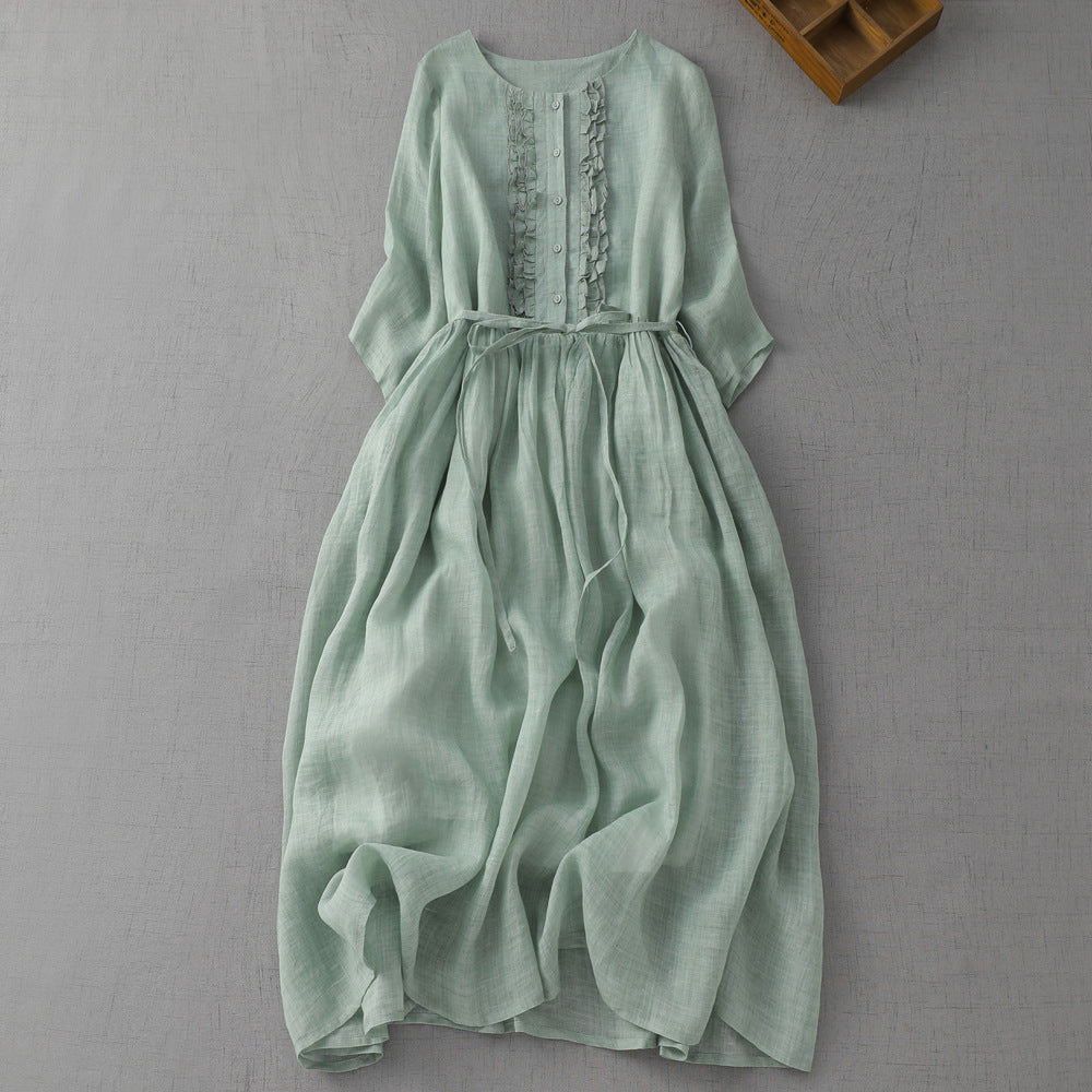 Len ma żywe postrzępione krawędzie i tekstury, które podkreślają teksturę. Jest elegancki, nie tracąc temperamentu koloru płótna i prosty, nie tracąc przy tym doskonałości materiału.