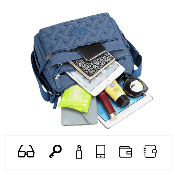 Duża pojemność, a jednocześnie kompaktowa konstrukcja może pomieścić niezbędne rzeczy, w tym ulubiony smartfon, tablet, karty i szminki, perfumy, kosmetyki. Nie martw się, twoje klucze są idealne!