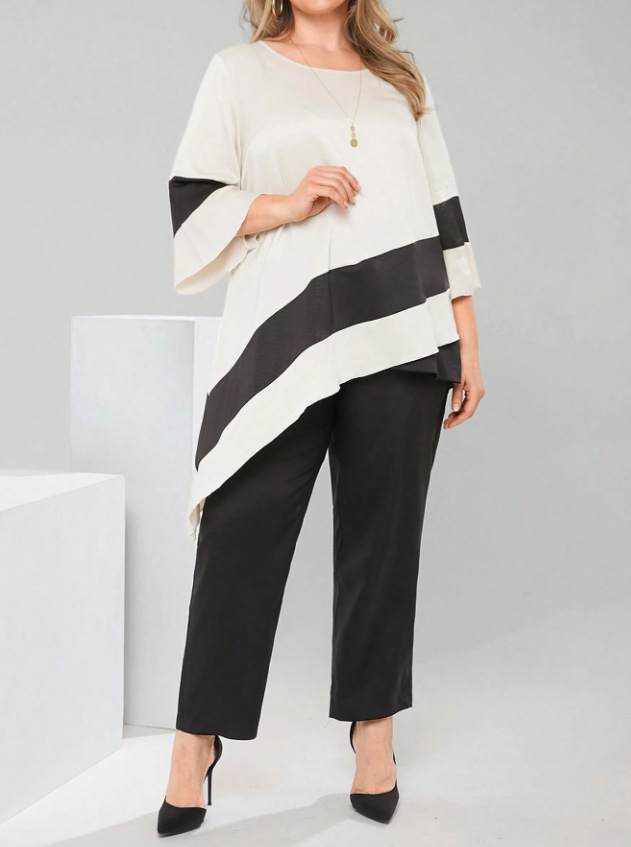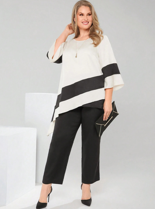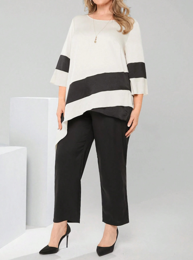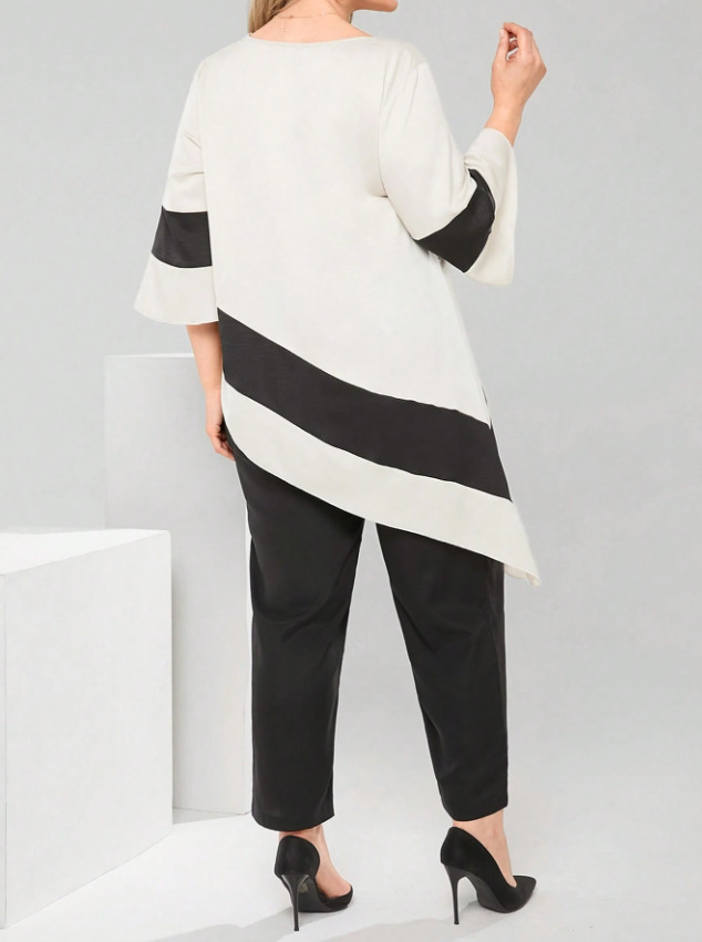 🤍Czarno-biały kontrastowy luźny top z okrągłym dekoltem i rozszerzanymi rękawami🖤
